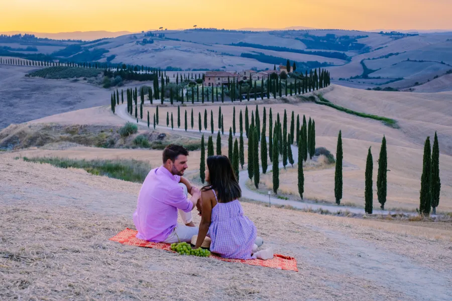 Exploring Tuscany by car allows couples to enjoy a holiday shaped by spontaneity and discovery. Routes through the Val d’Orcia, the Crete Senesi, or the countryside between Lucca and Montecarlo offer sweeping landscapes, medieval villages and quiet corners perfect for romantic stops. These drives create an atmosphere of shared adventure, ideal for a couple seeking meaningful moments during a Sant Valentine retreat.