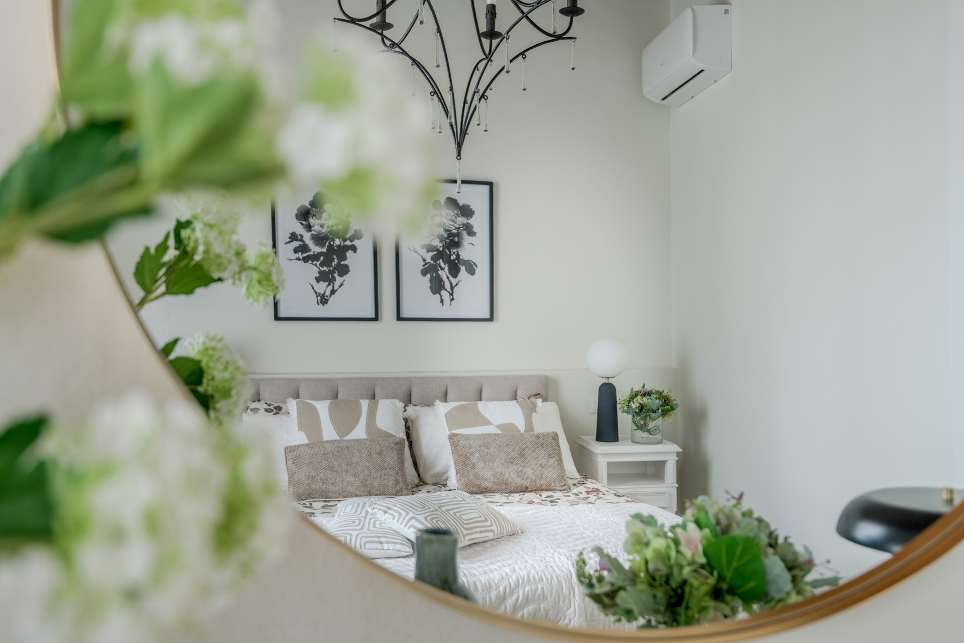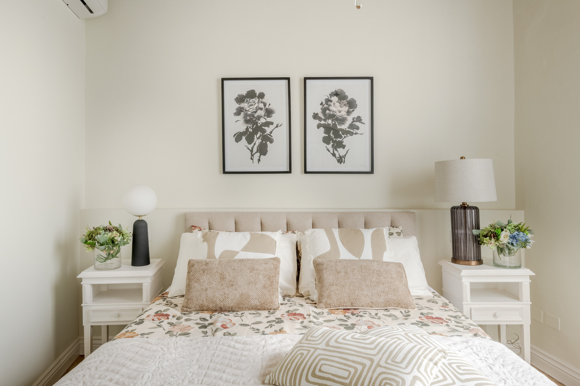 The Sleeping Quarters: Two serene double bedrooms are designed as true sanctuaries, featuring bespoke upholstery, curated artwork, and soft, natural textures that invite deep relaxation.