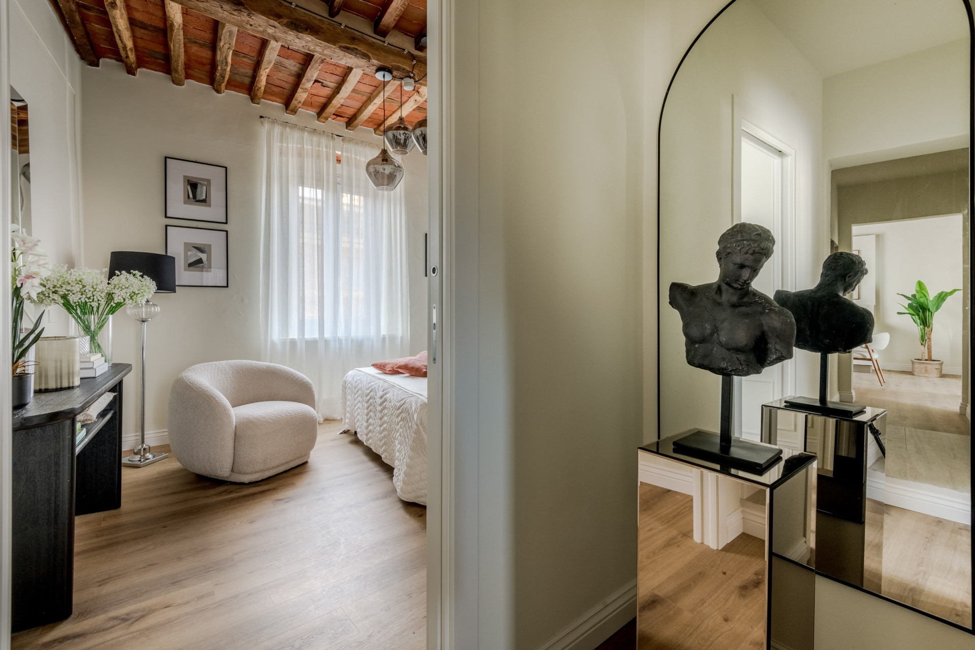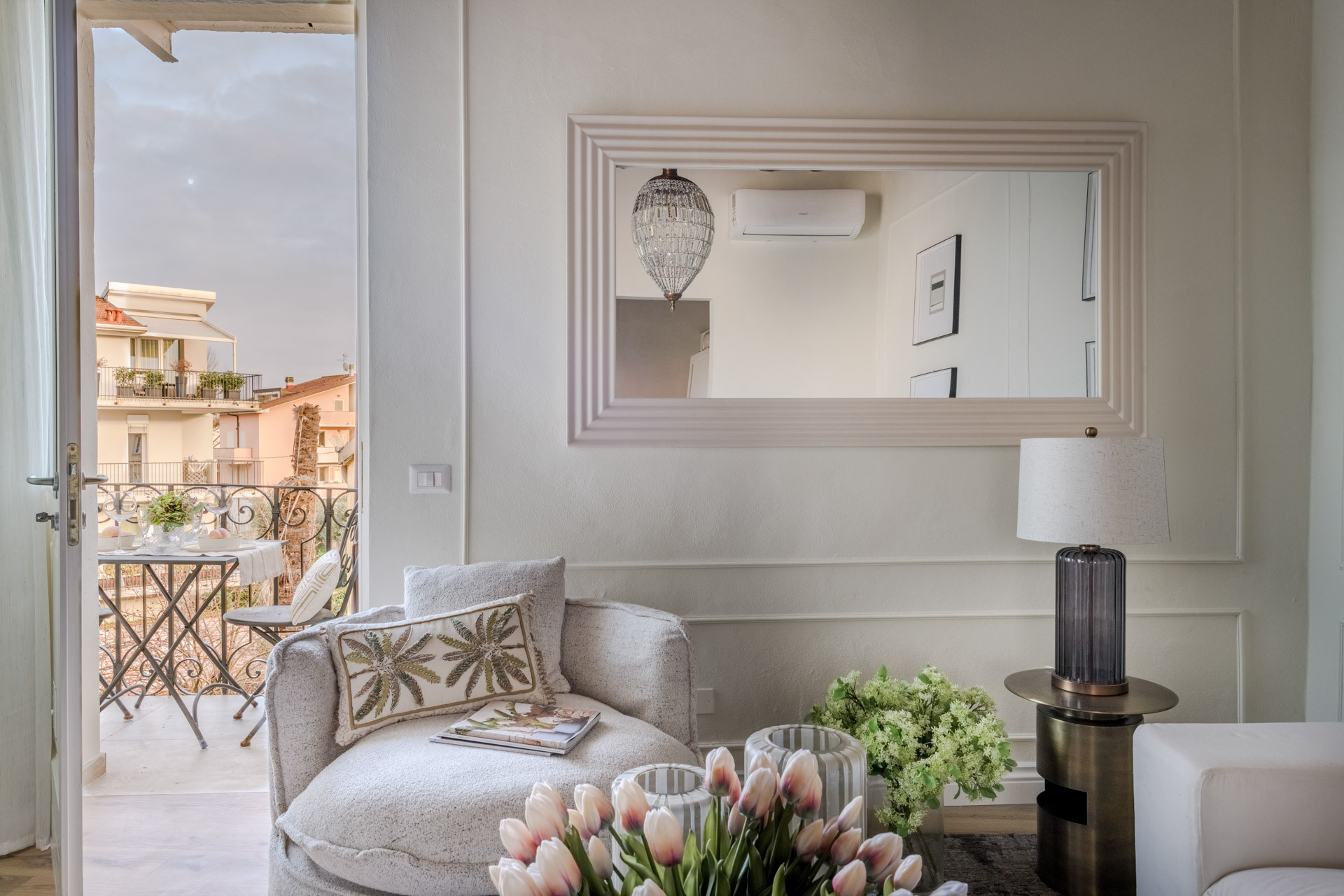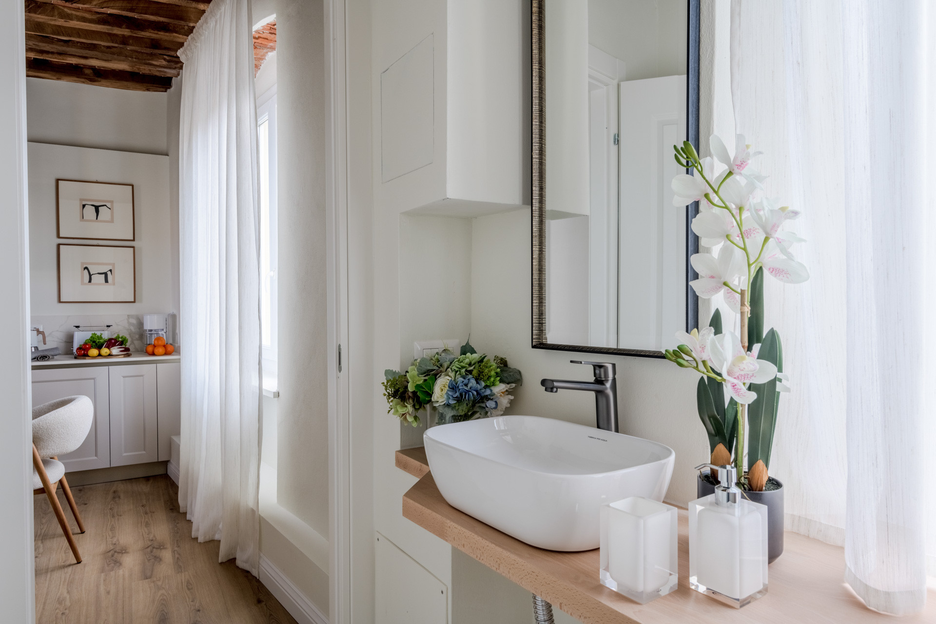 After a day of exploration, retreat to the "bijou" terrace. Though petite, it offers a private slice of the outdoors—the perfect corner for a glass of Vermentino as the sun sets over the Tuscan rooftops.