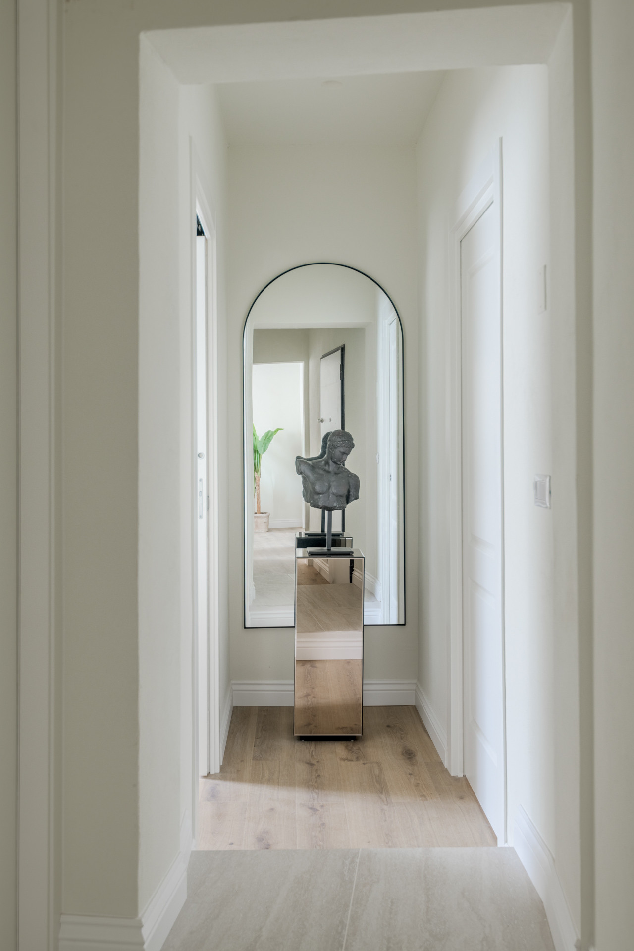 Convenient Luxury: The layout includes two full, designer bathrooms. To maintain a sense of space and flow, one is located in the quiet corridor leading to the bedrooms, while the second is conveniently positioned near the dining area.