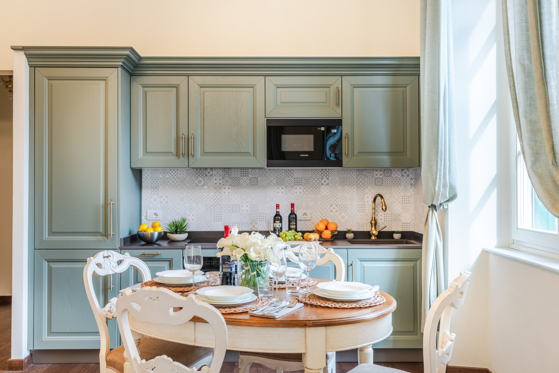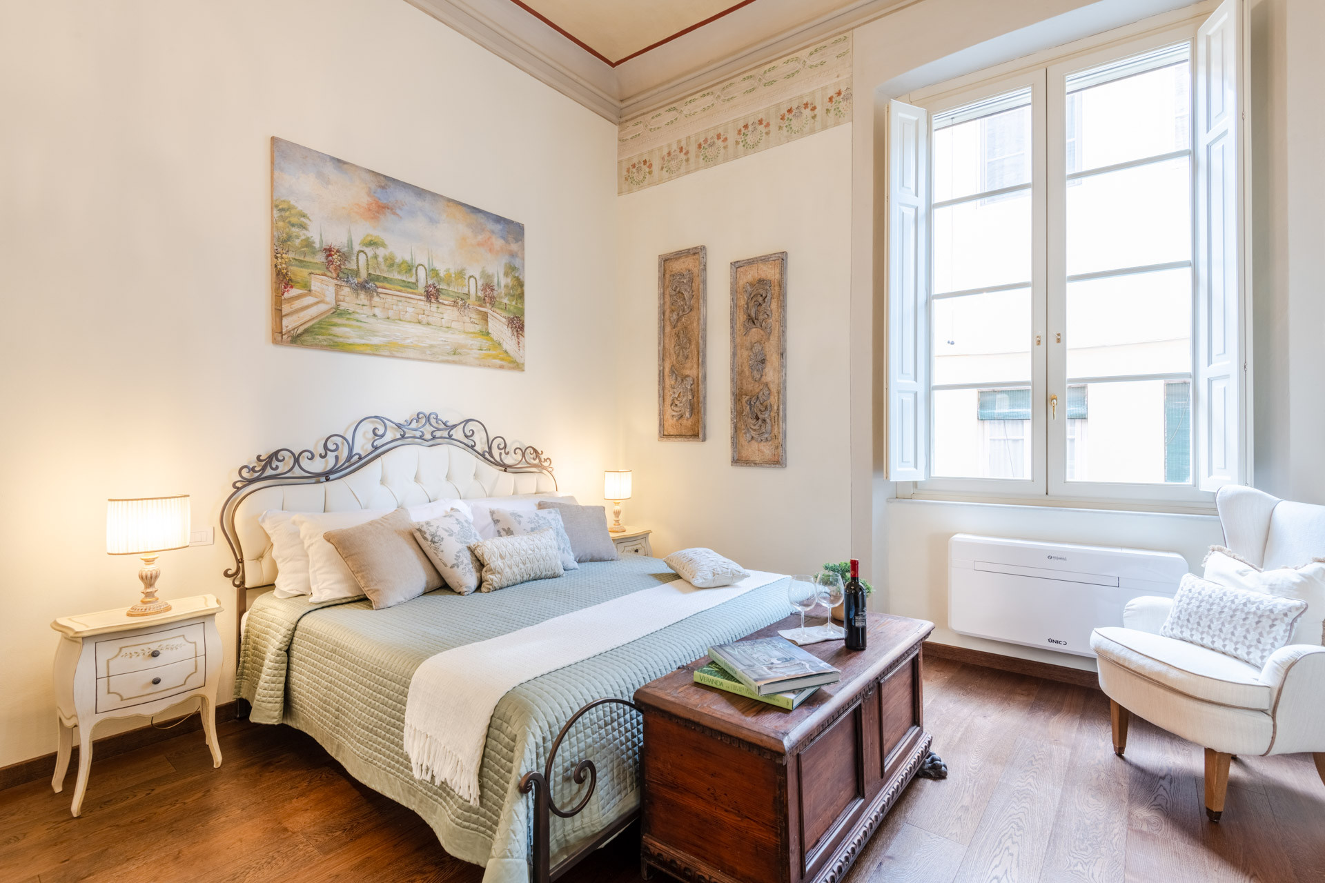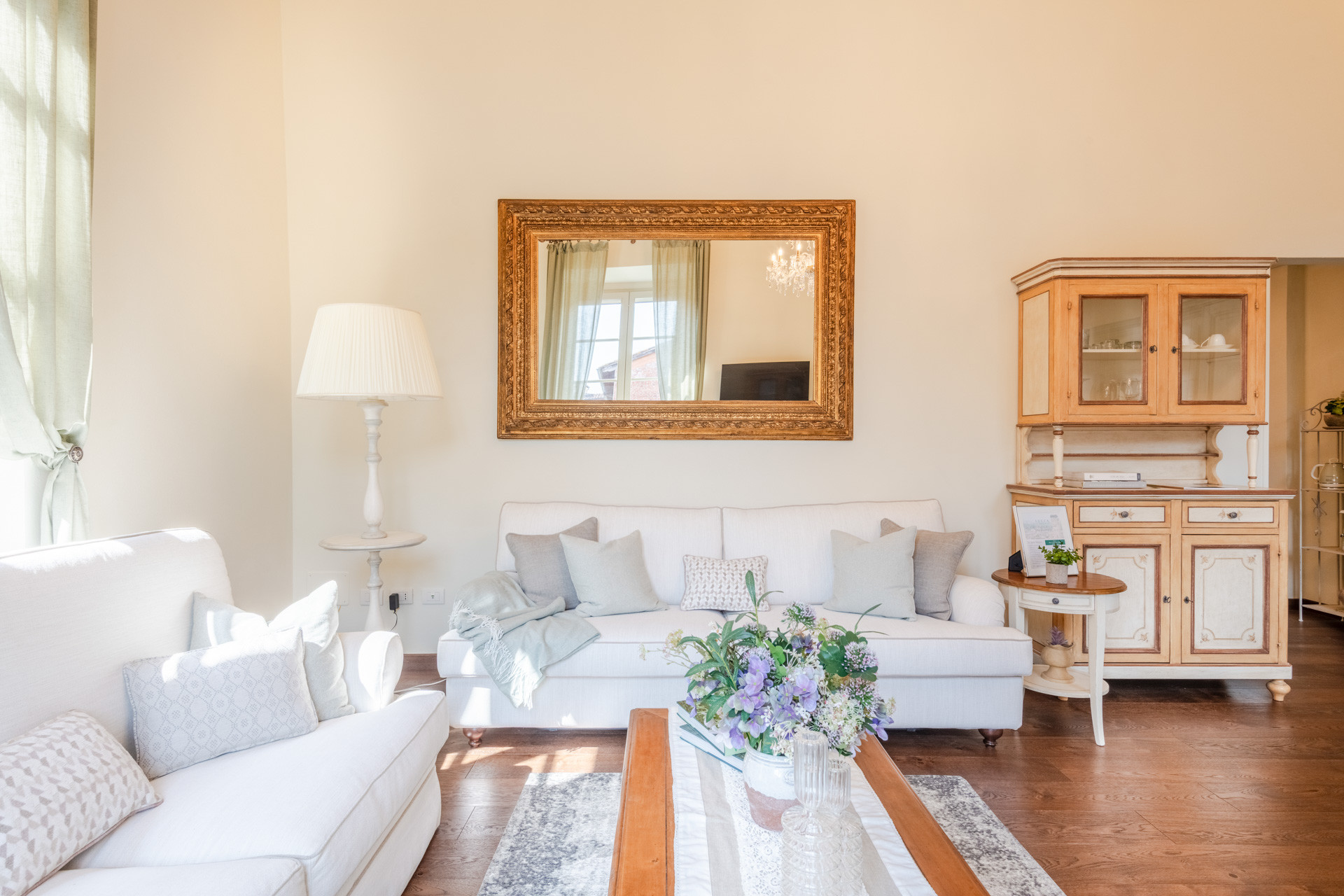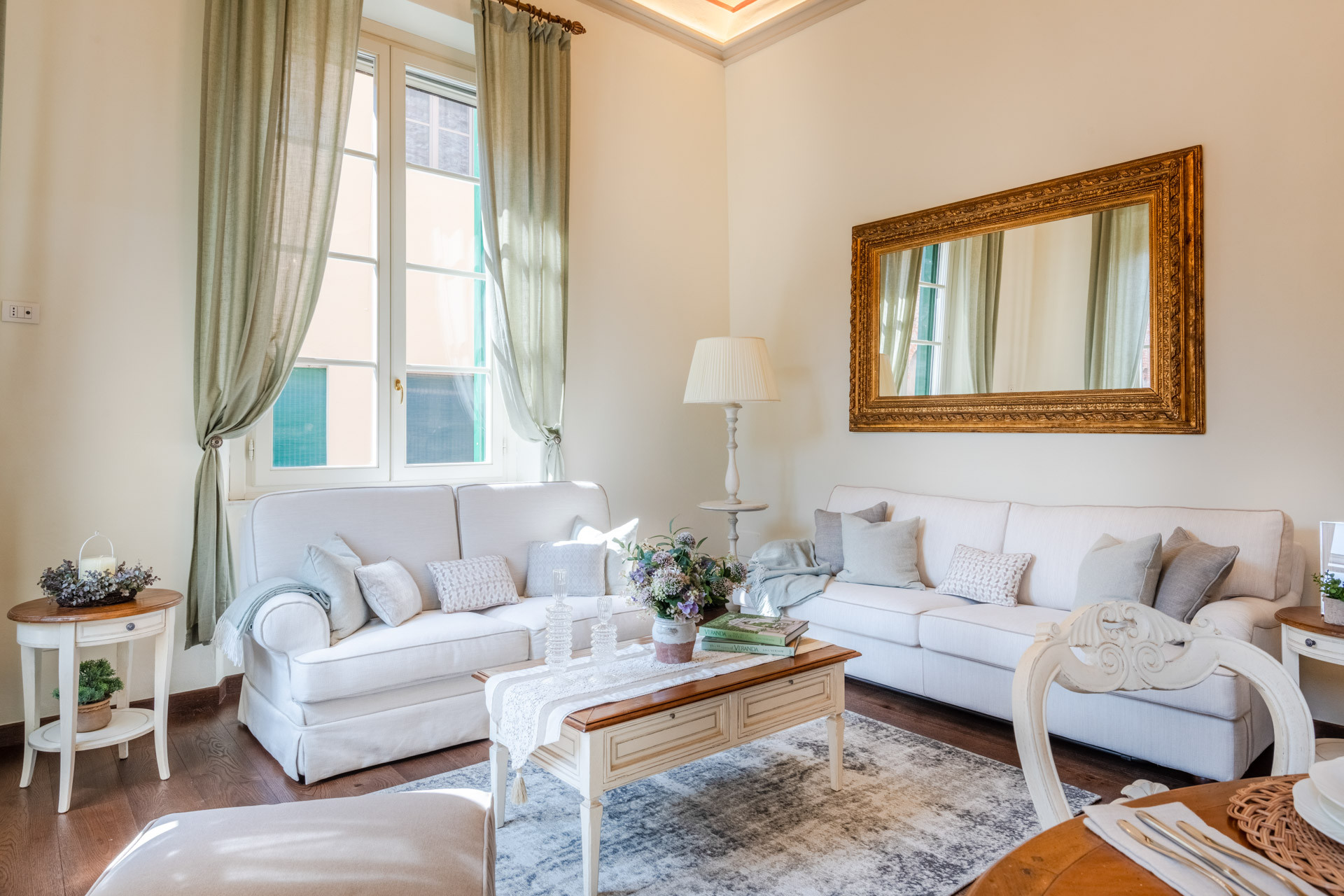 Bathed in natural light and decorated with classic Italian touches, Orsucci Palace comfortably accommodates up to 4 guests. The spacious bedroom features a large King size bed, while the bright and inviting living room has a double sofa bed.