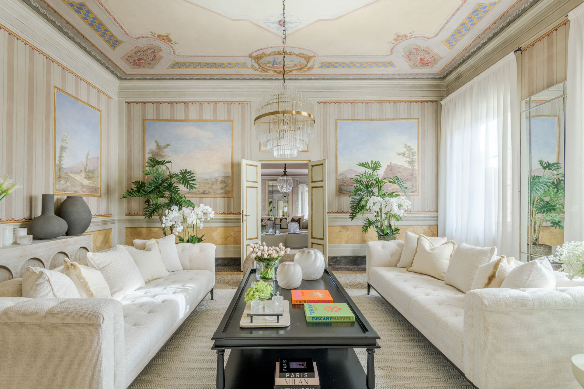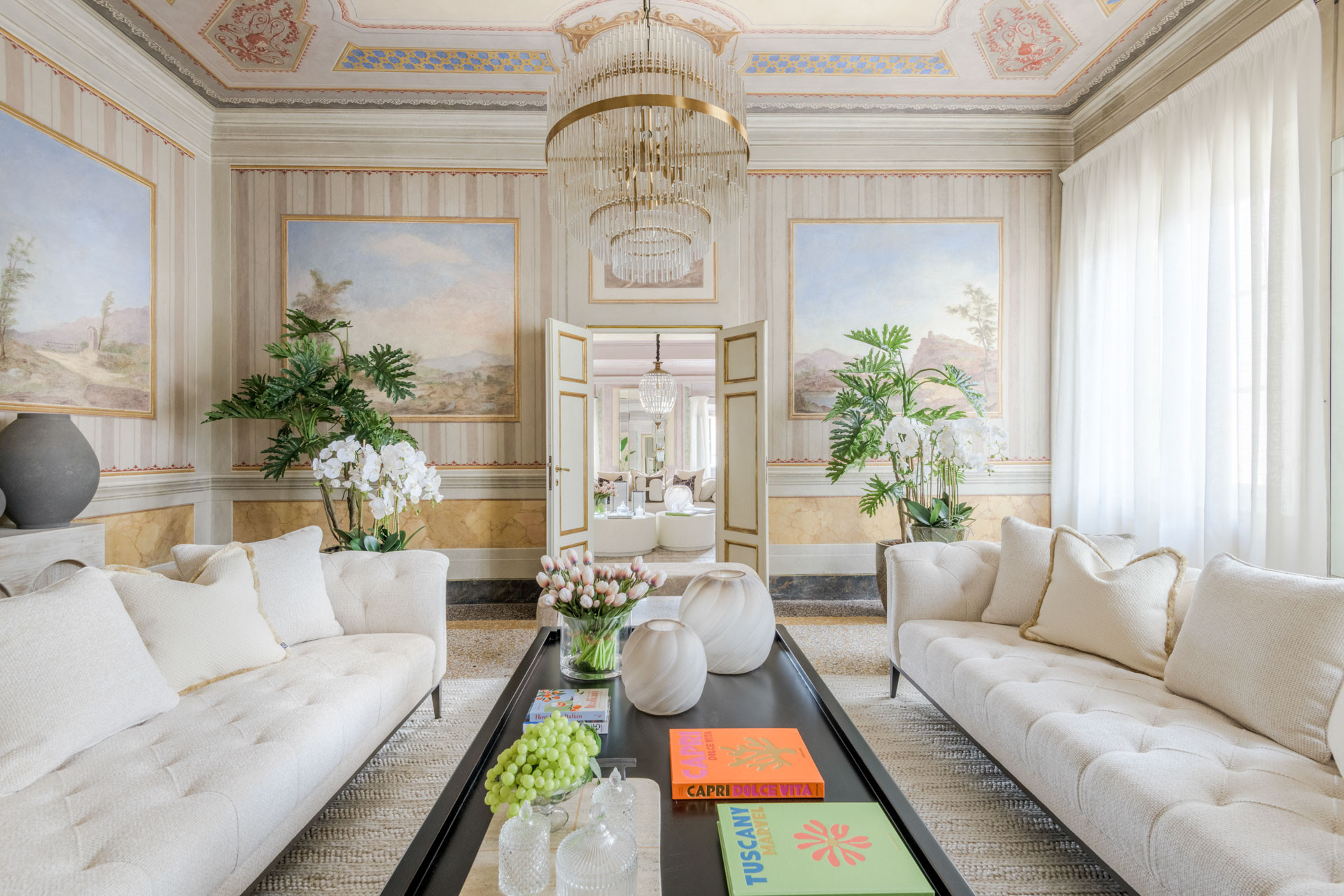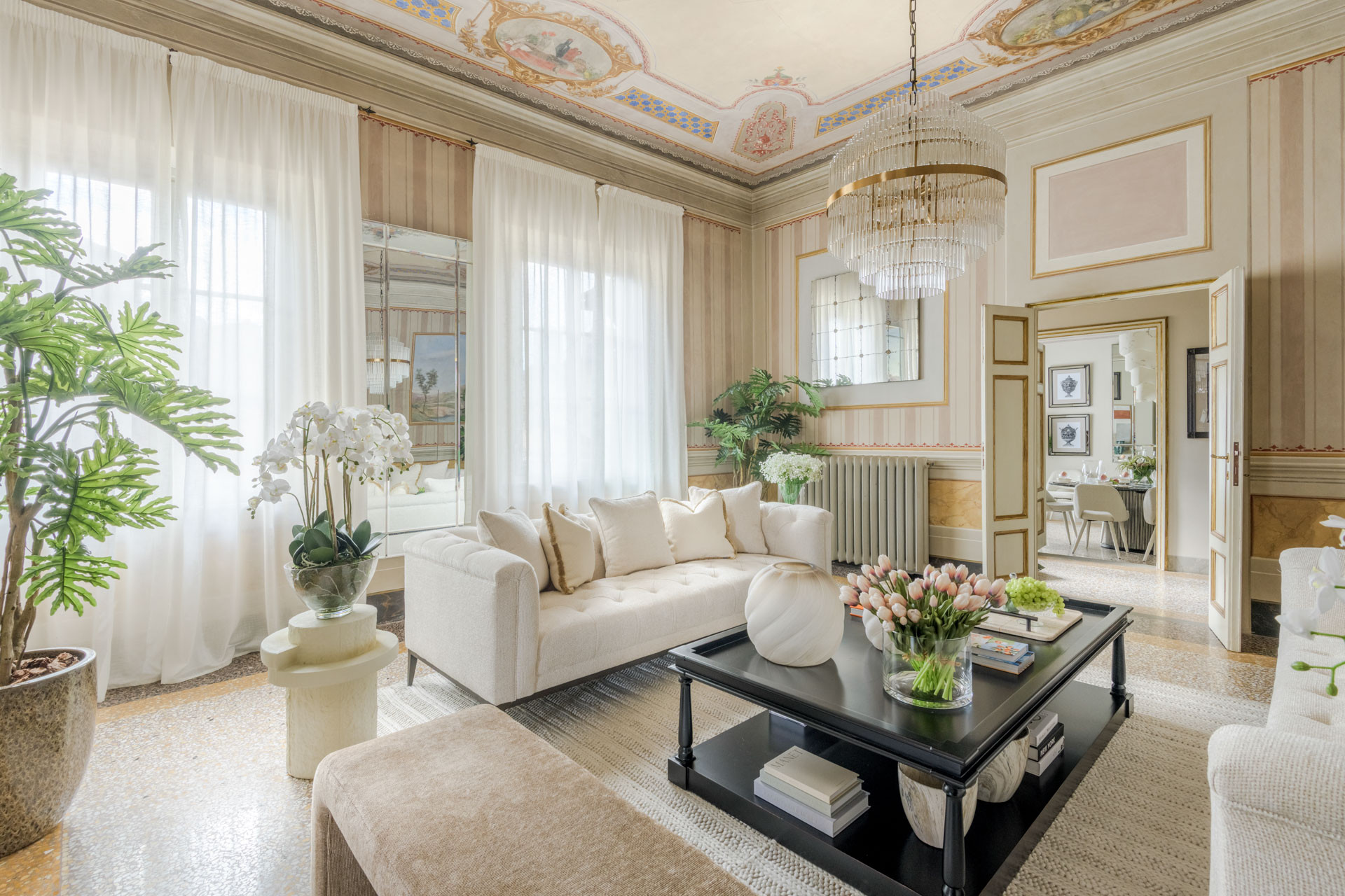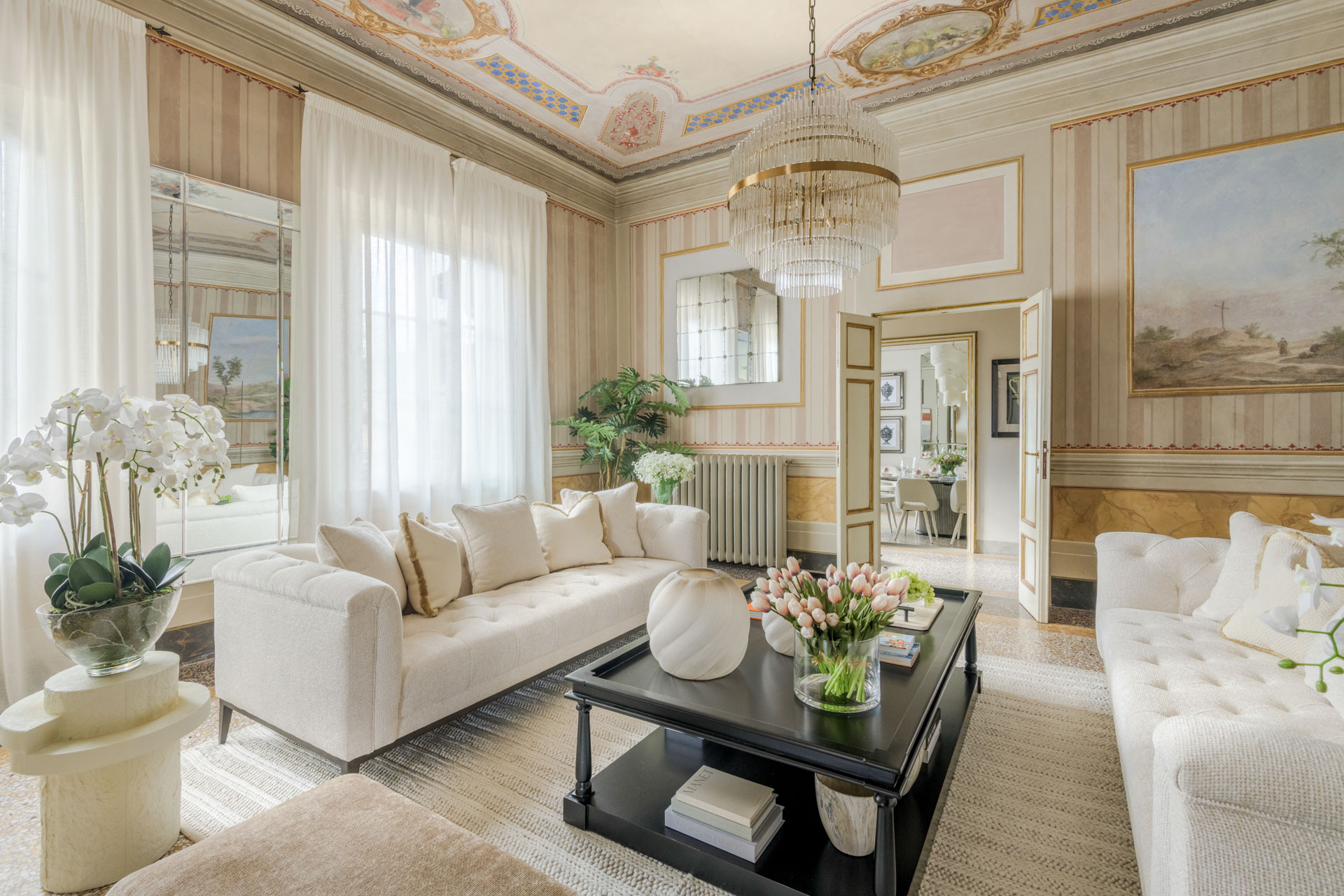 The spacious rooms of this historic palace still preserve their original early-19th-century decorative paintings, lending an authentic sense of grandeur and history. These artistic details have been carefully enhanced by the renovation, which introduces modern comfort, advanced systems, and discreet luxury—allowing the past and present to converse effortlessly.