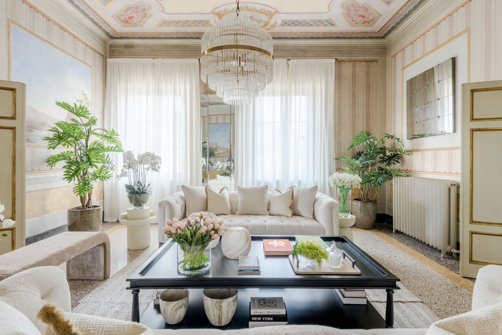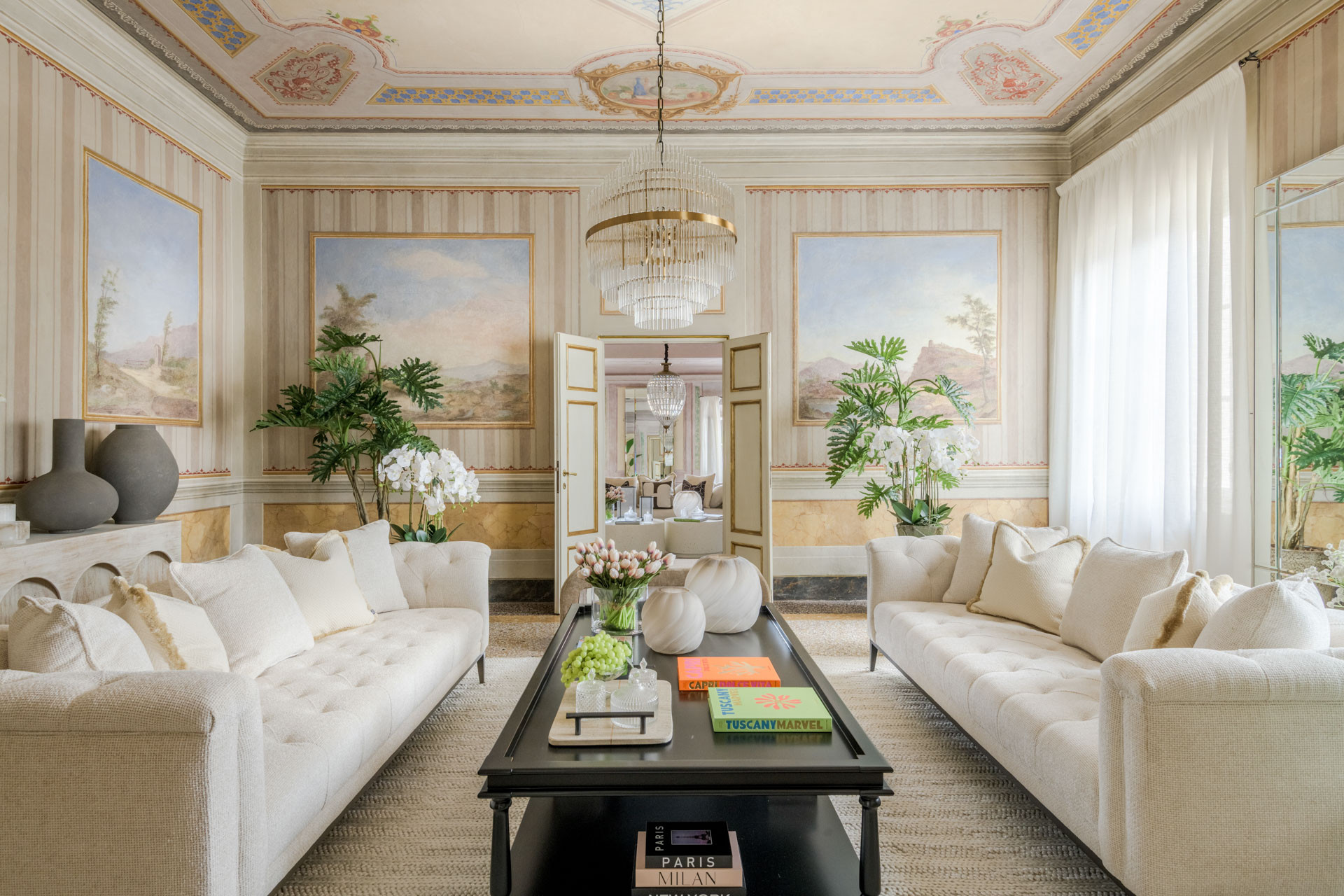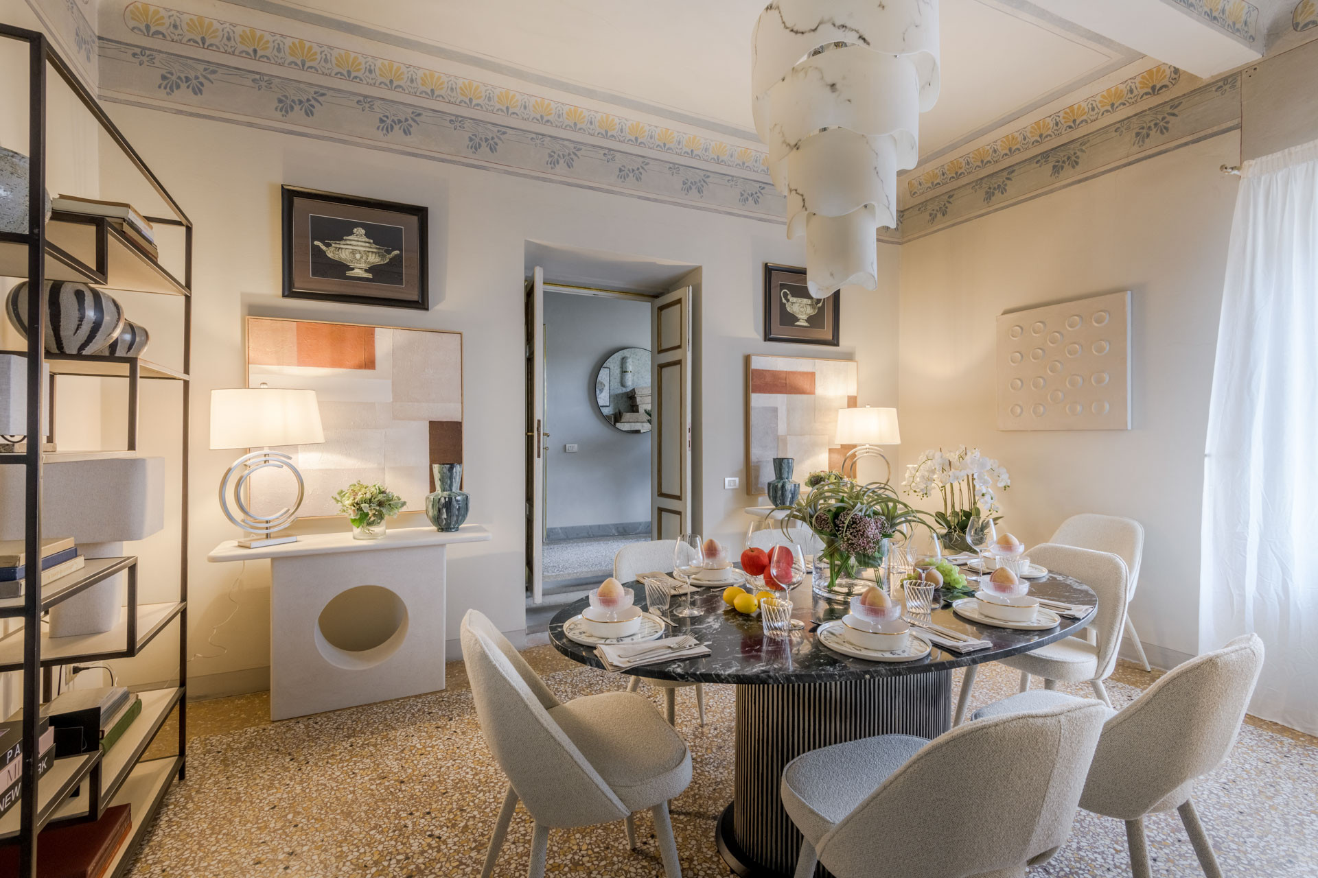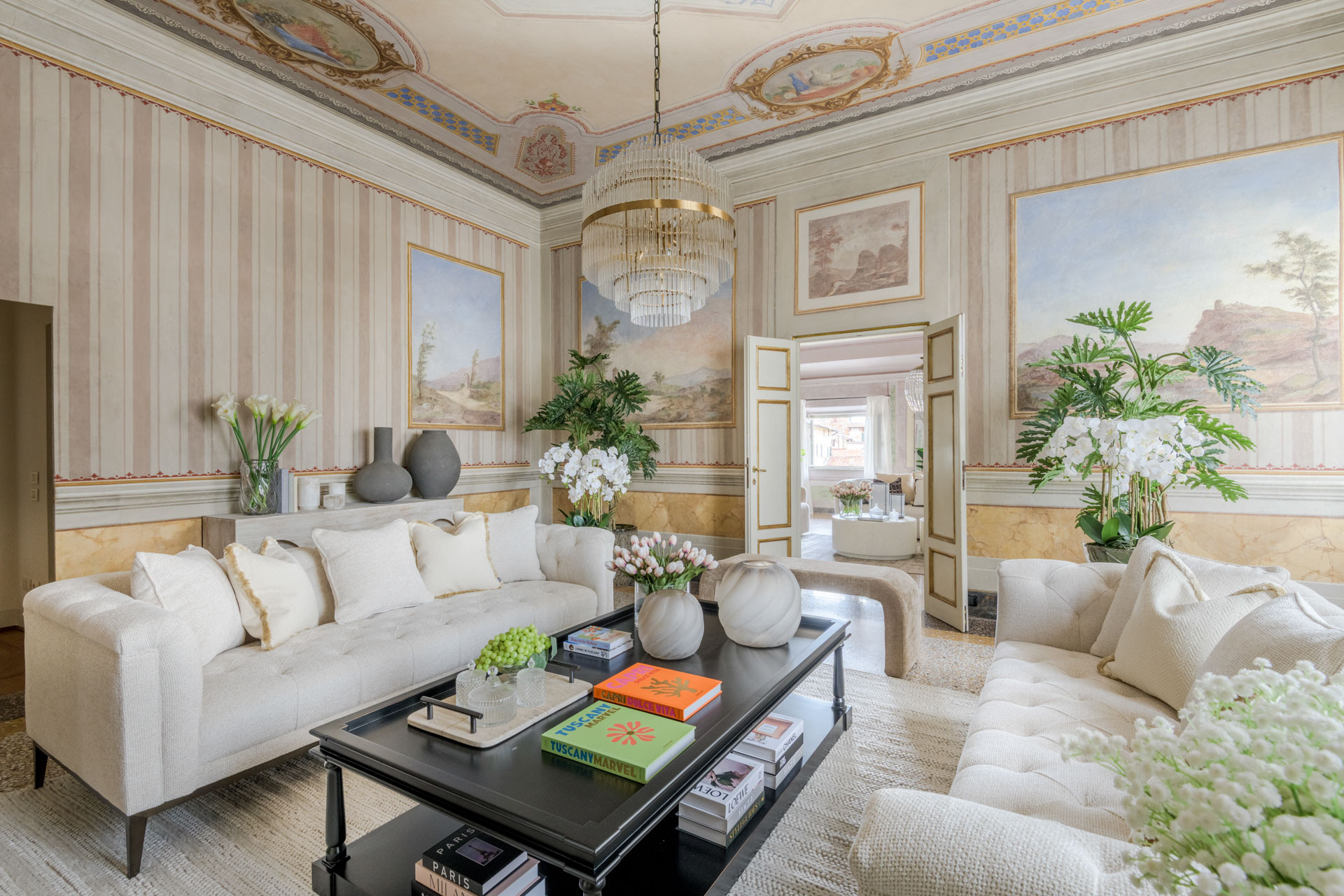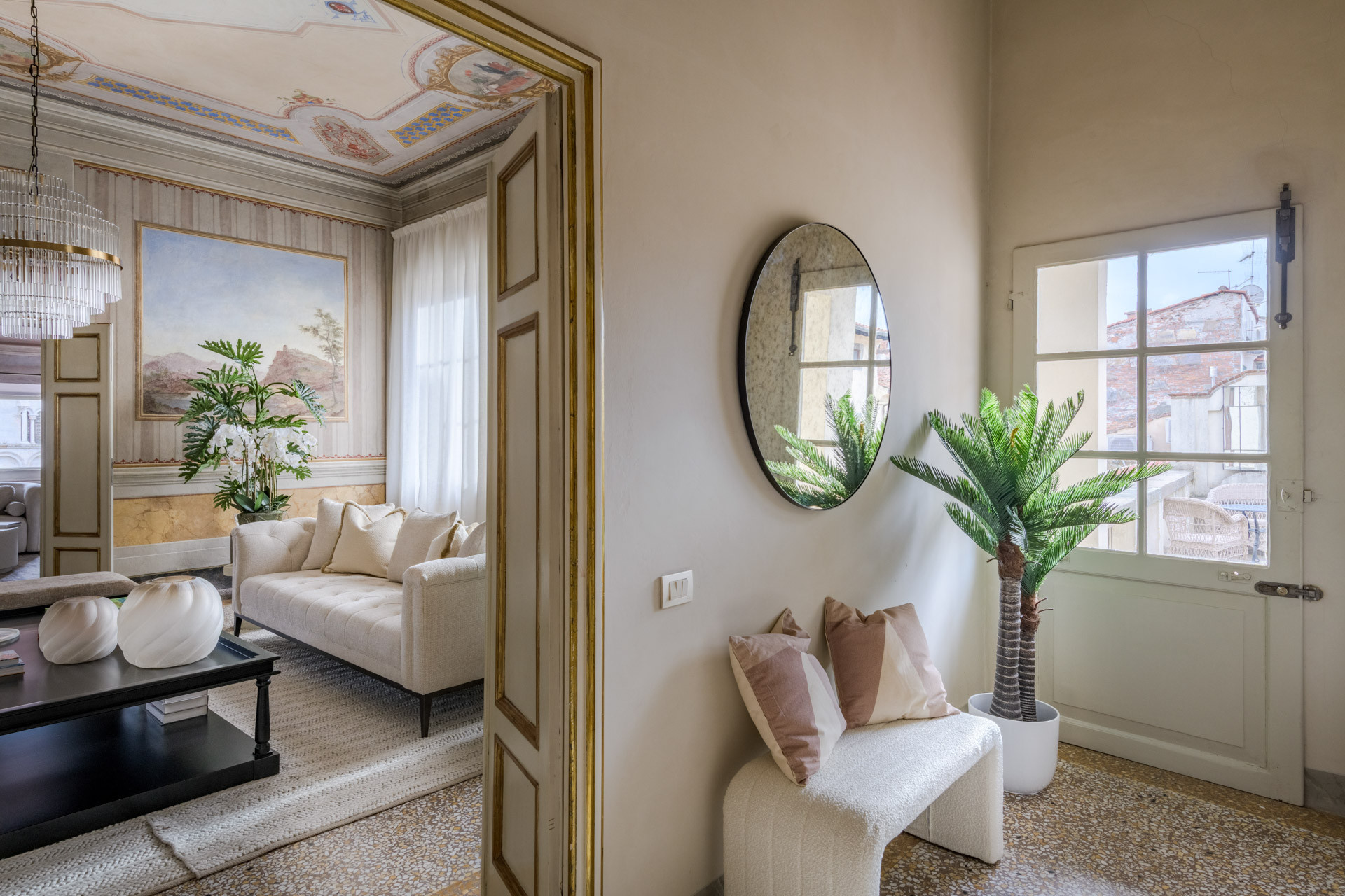 The spacious rooms of this historic palace still preserve their original early-19th-century decorative paintings, lending an authentic sense of grandeur and history. These artistic details have been carefully enhanced by the renovation, which introduces modern comfort, advanced systems, and discreet luxury—allowing the past and present to converse effortlessly.