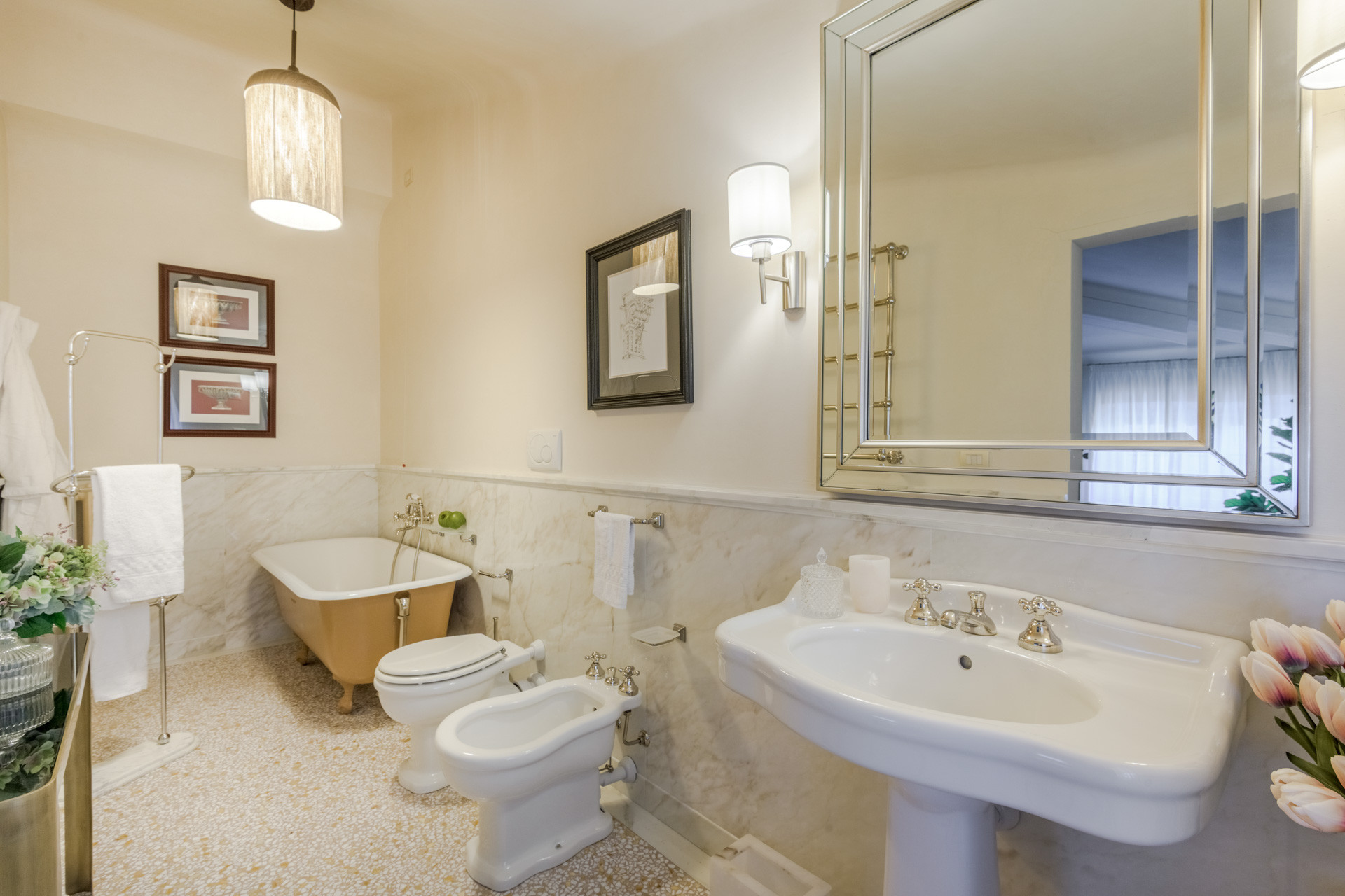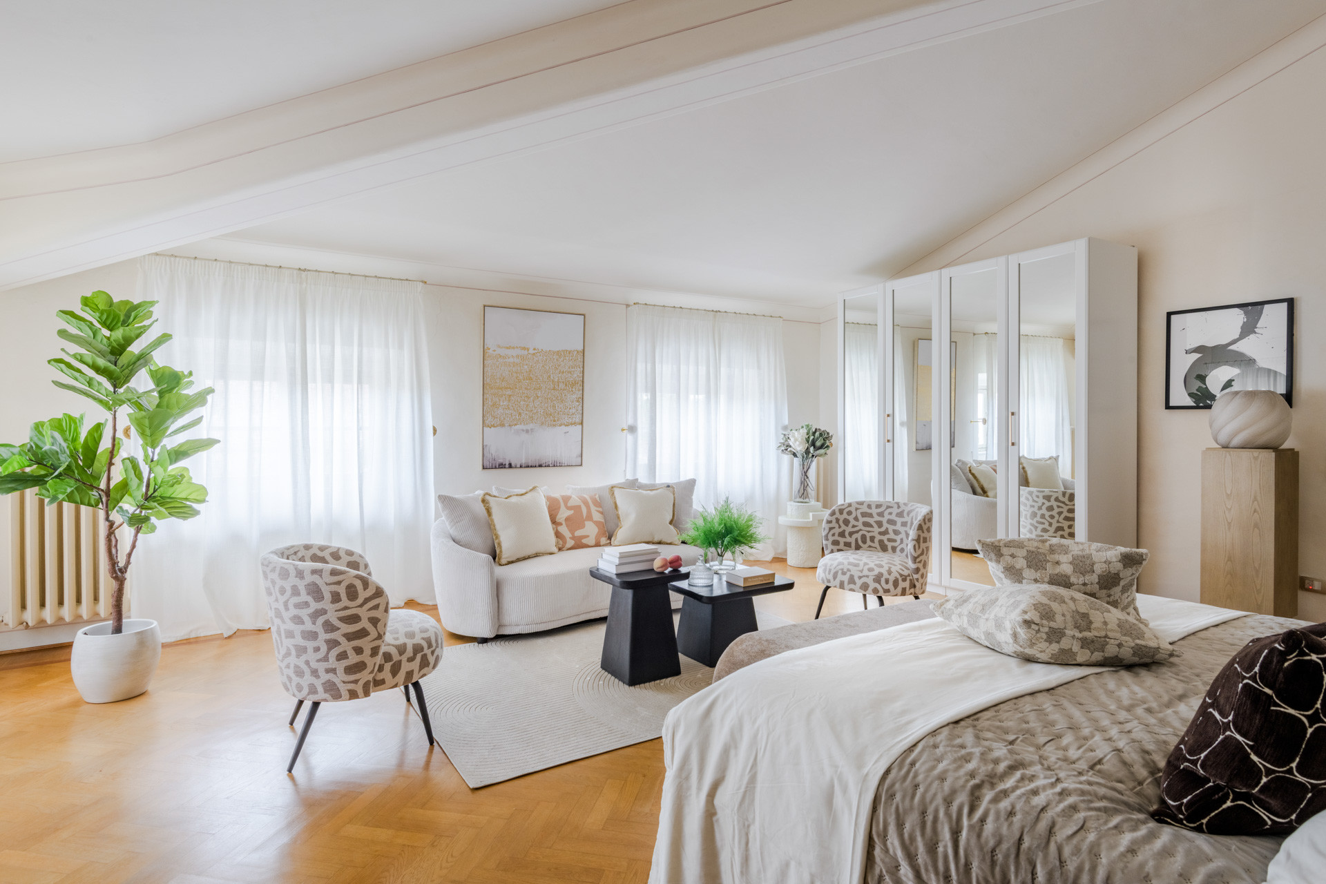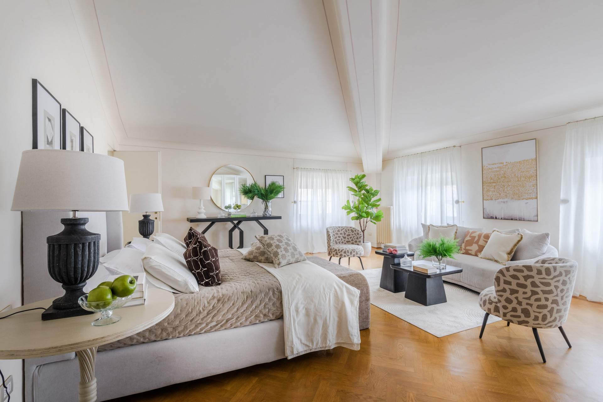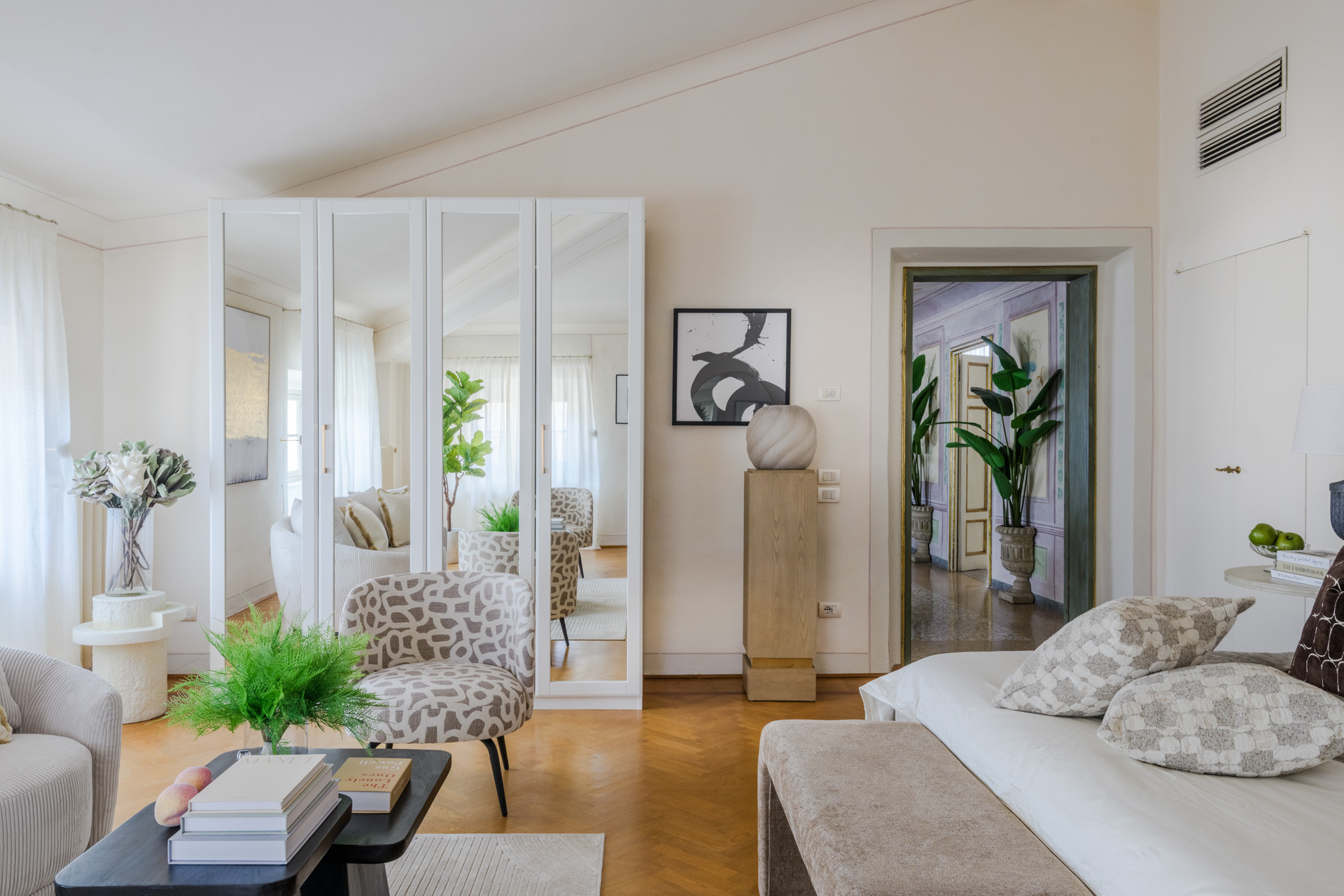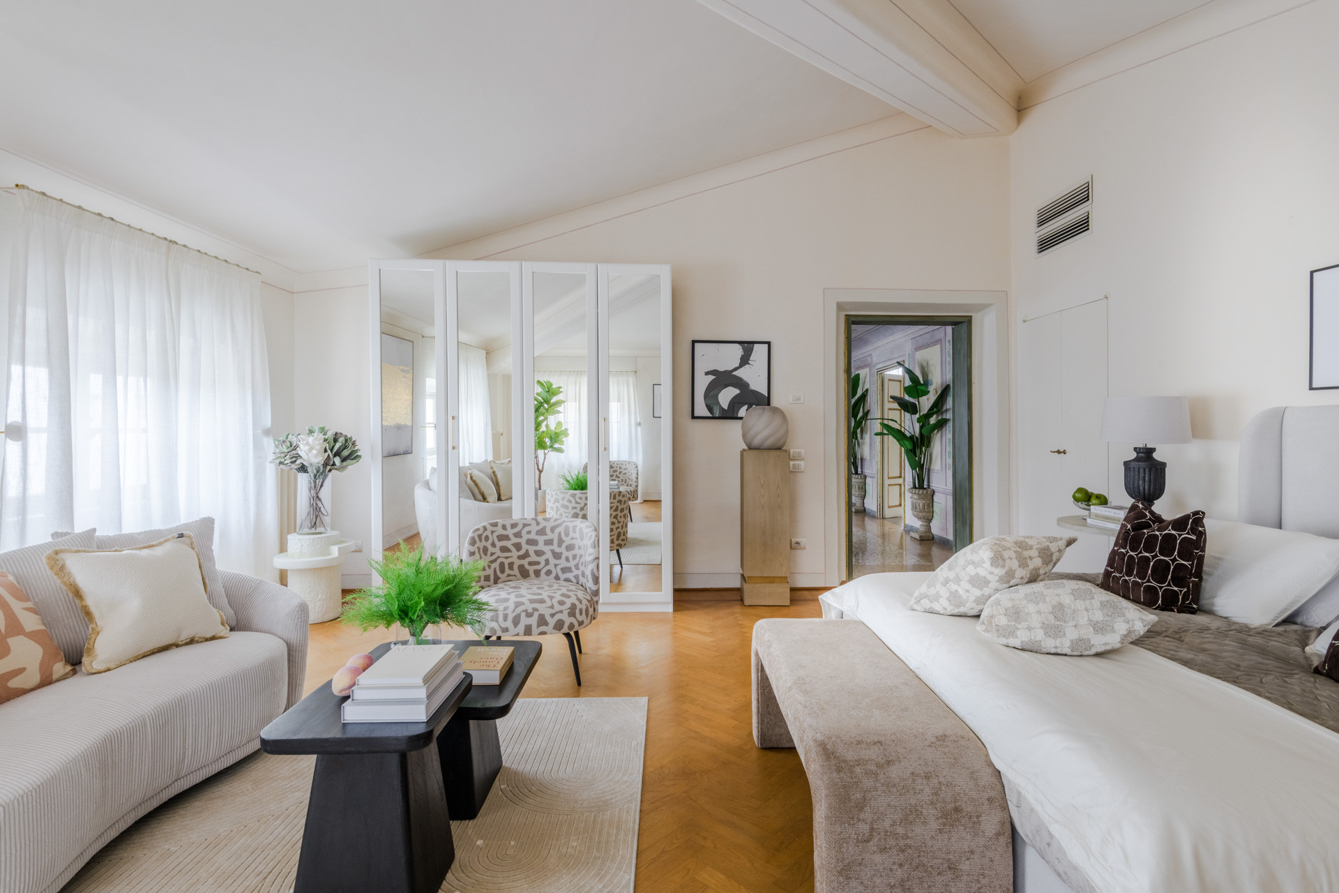 Recently renovated in late 2025, the penthouse seamlessly blends noble heritage with contemporary elegance. The apartment features four sumptuous suites, each with its own beautifully appointed classic-design bathroom, where Italian craftsmanship meets modern functionality. State-of-the-art interiors, refined materials, and bespoke details coexist harmoniously within a period architecture of rare character.