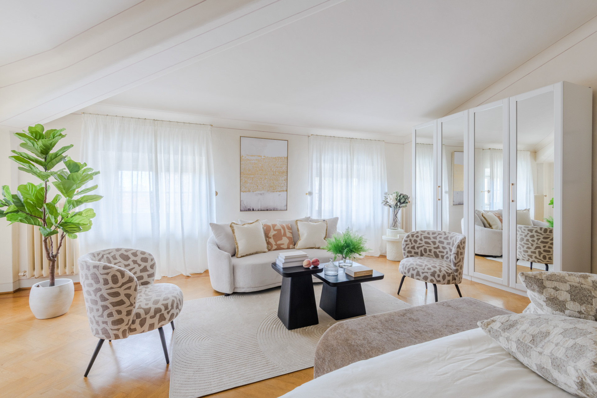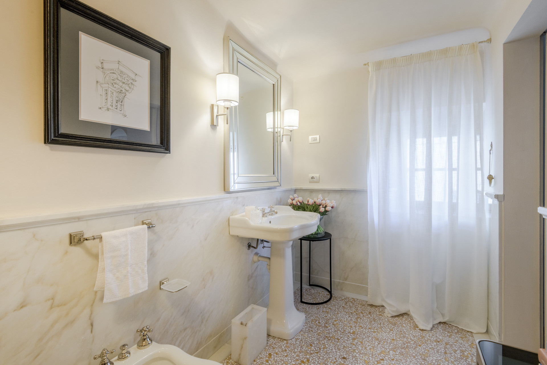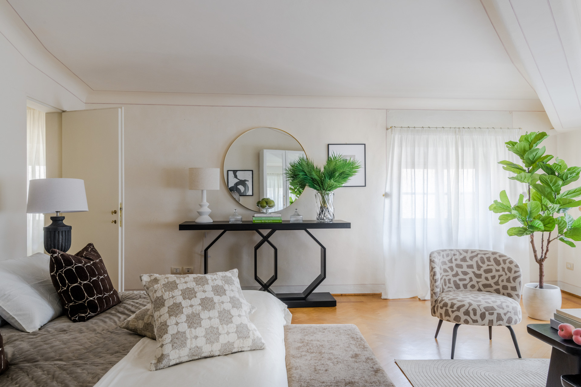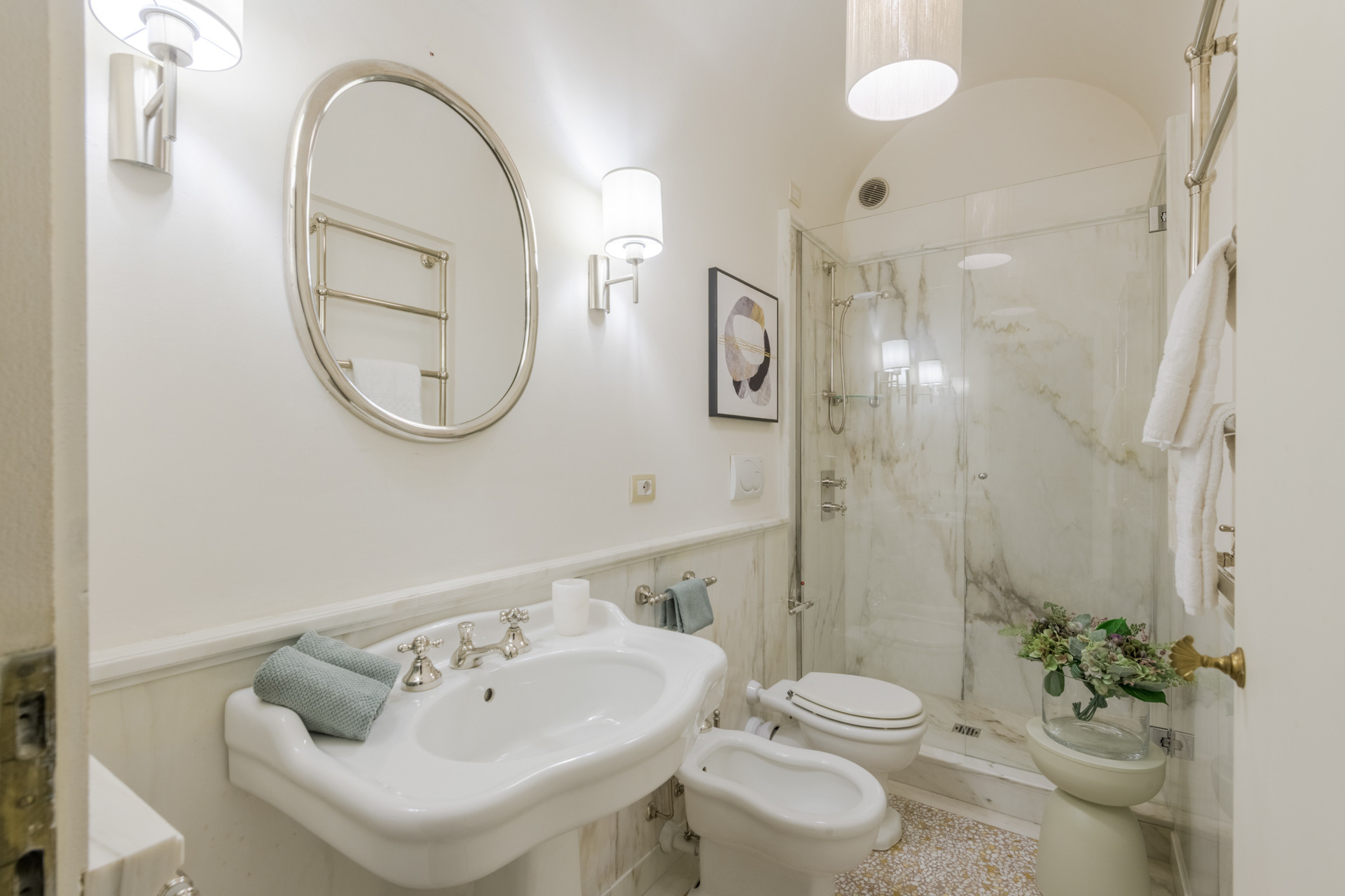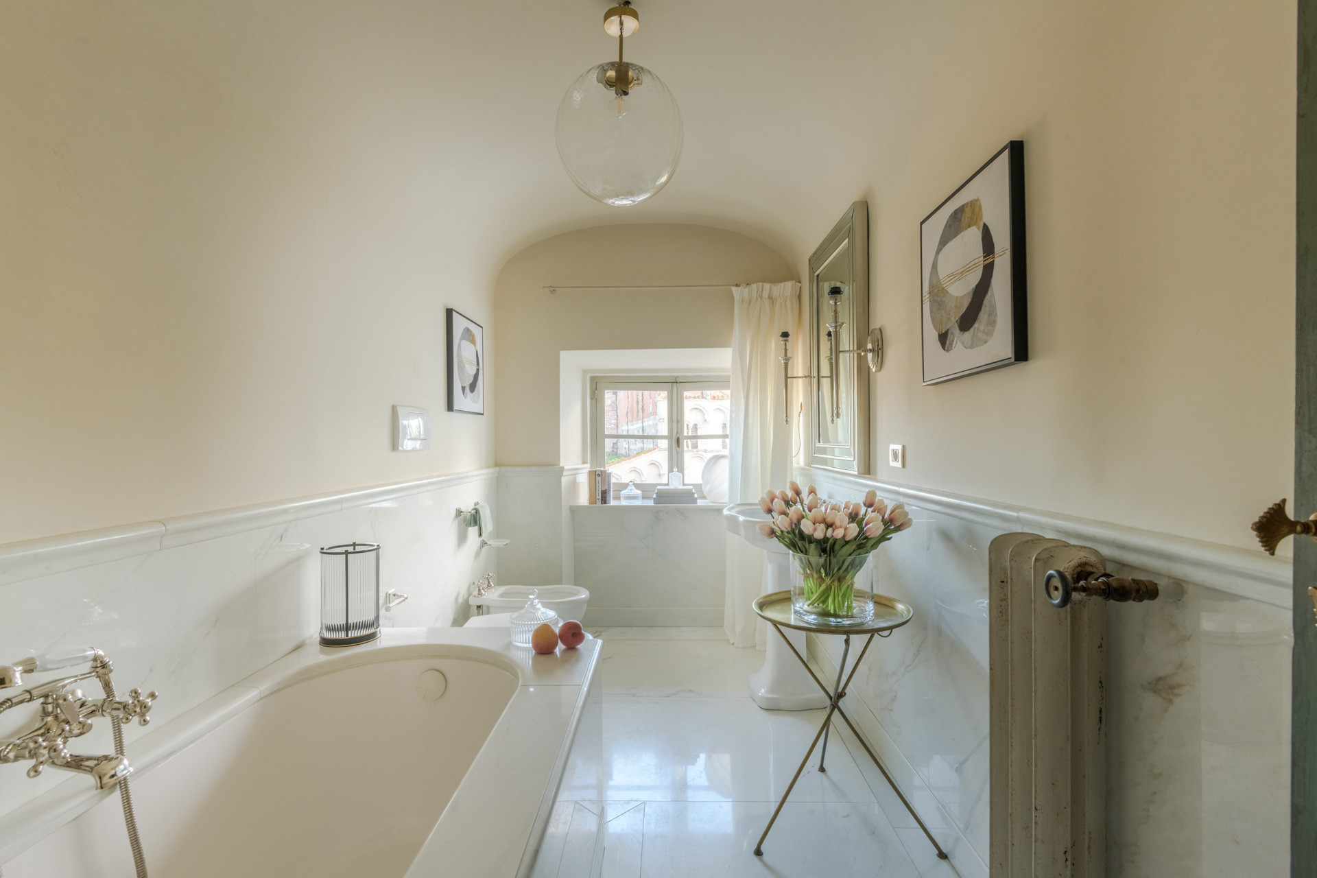 Recently renovated in late 2025, the penthouse seamlessly blends noble heritage with contemporary elegance. The apartment features four sumptuous suites, each with its own beautifully appointed classic-design bathroom, where Italian craftsmanship meets modern functionality. State-of-the-art interiors, refined materials, and bespoke details coexist harmoniously within a period architecture of rare character.