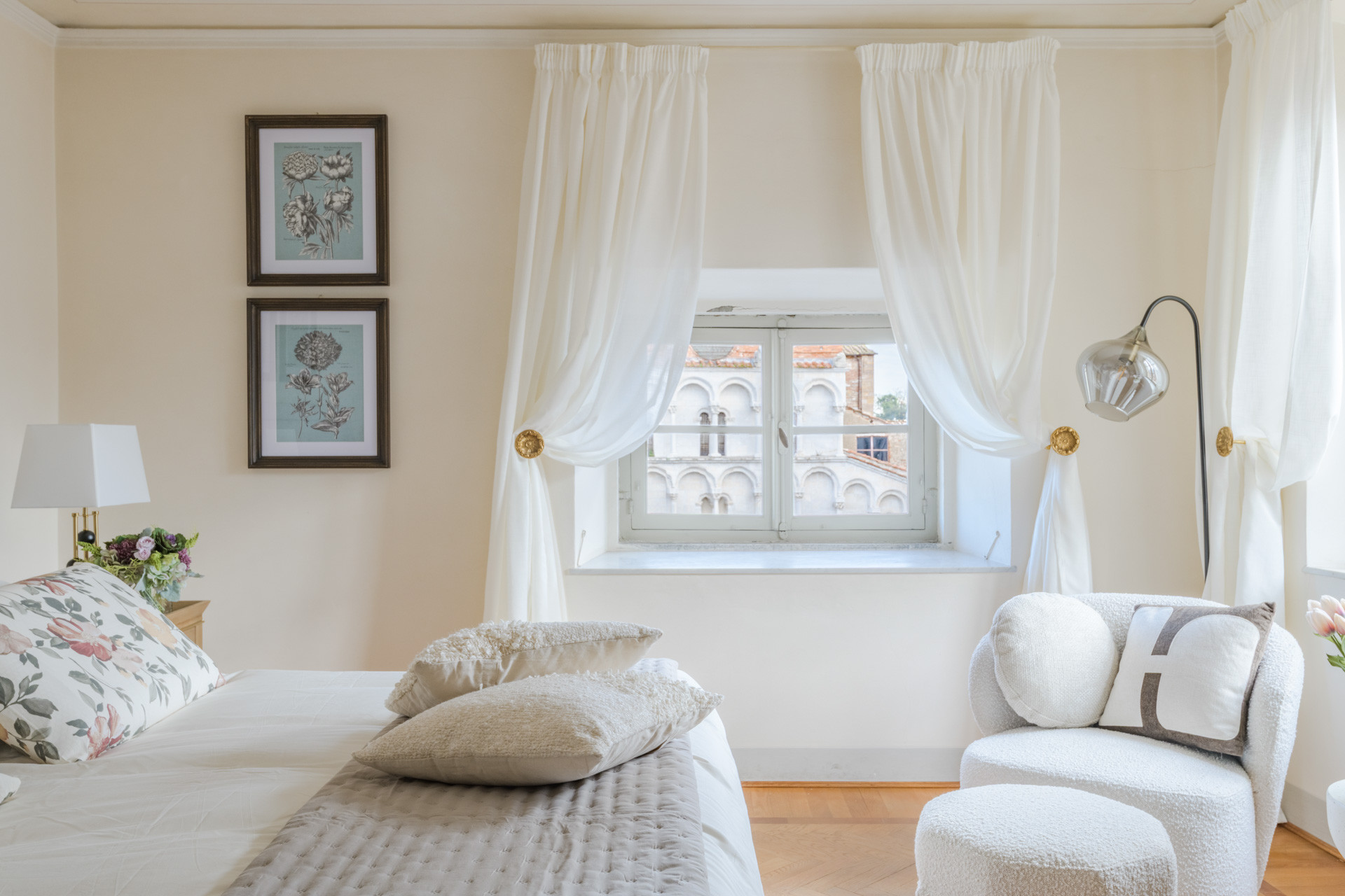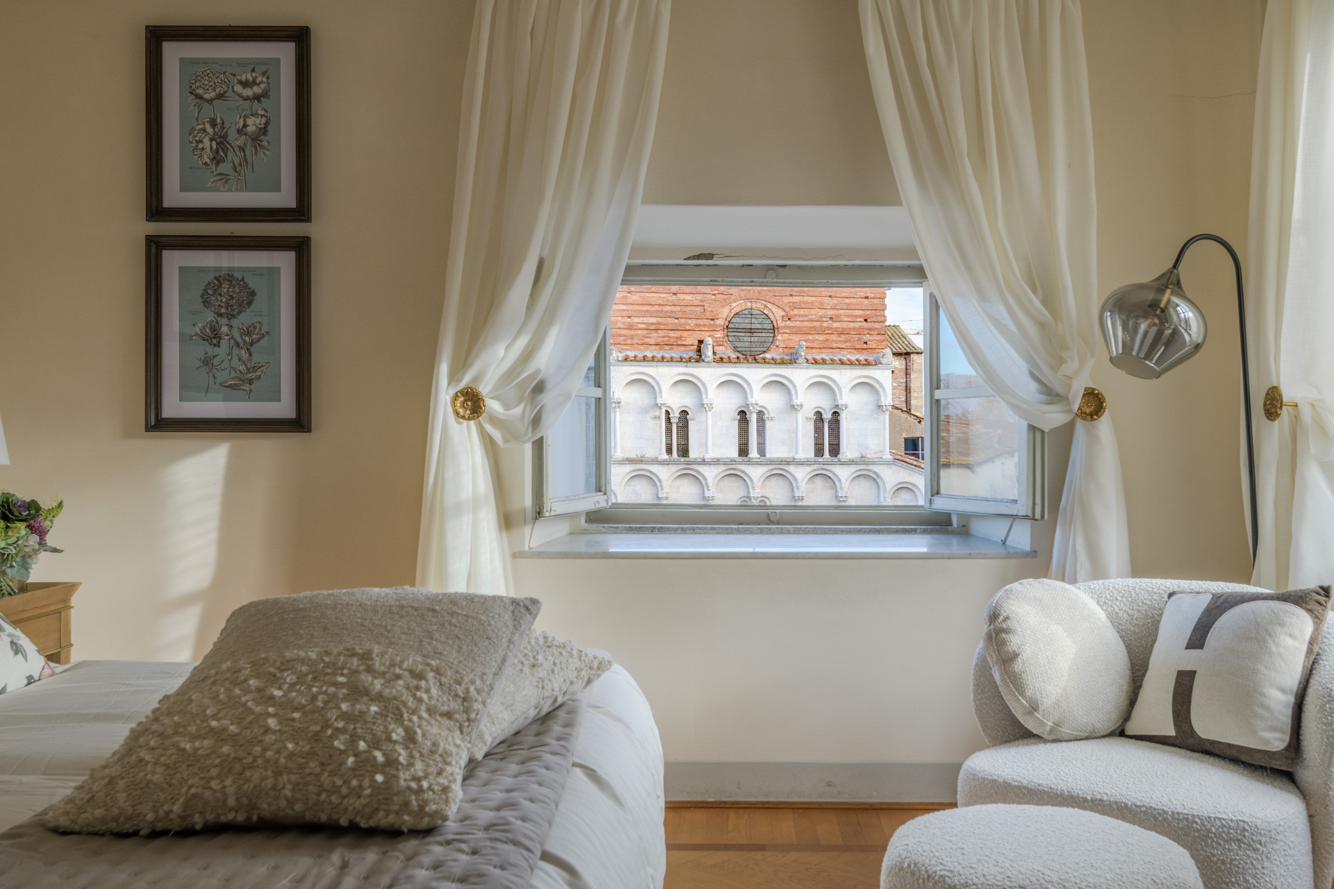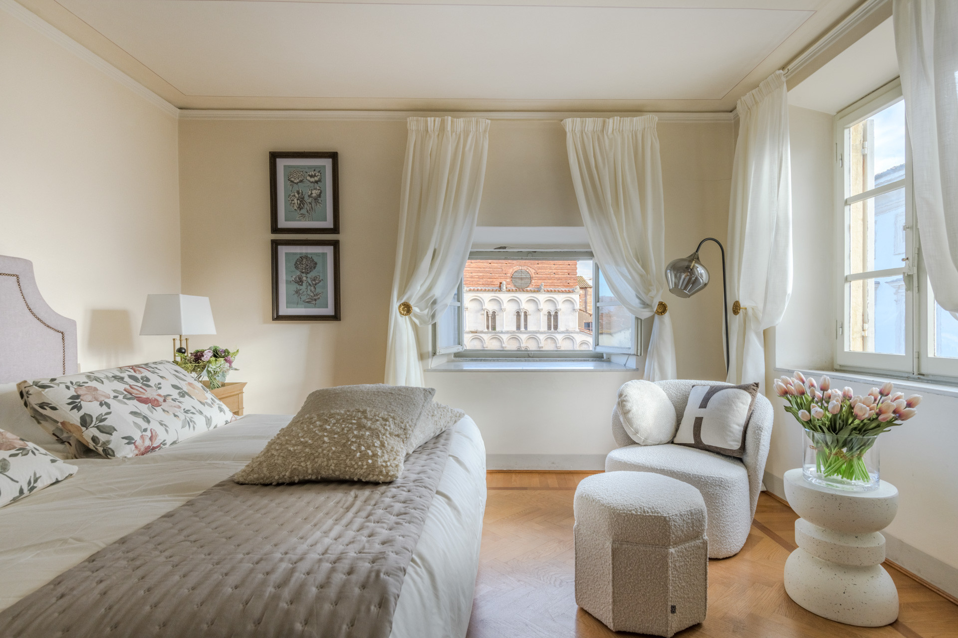 Despite its central position, convenience is effortless. The train station and a secure car parking area are less than a 10-minute walk away, while the main bus terminal can be reached in just 15 minutes on foot, making the apartment perfectly connected yet peacefully immersed in Lucca’s historic charm.