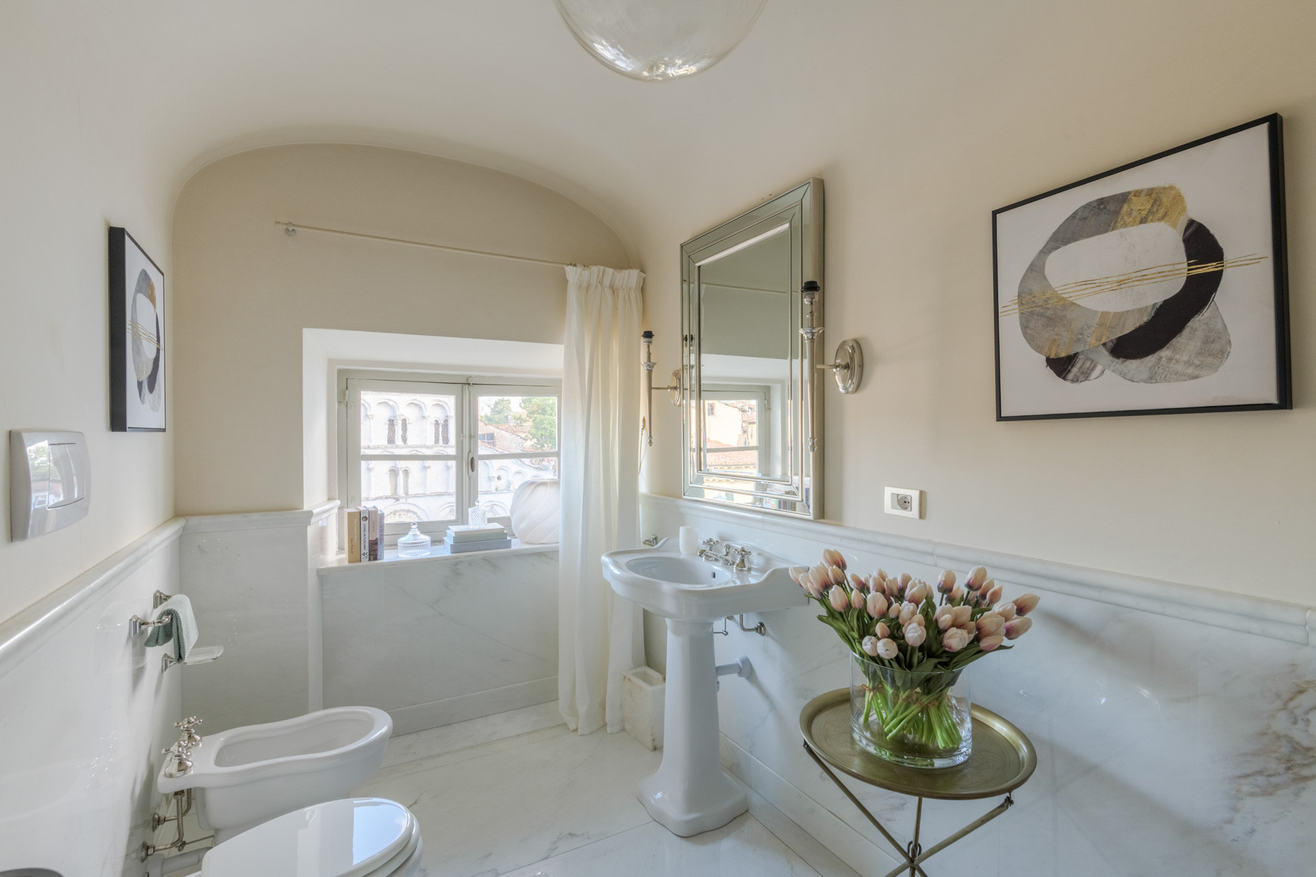 Completing this extraordinary residence is a panoramic terrace suspended above the city, an intimate and privileged space where Lucca reveals its most poetic side. As the sun sets, warm light washes over the marble façades and tiled rooftops, the bells echo softly across the piazza, and the city slows to a timeless rhythm—an unforgettable setting for aperitivi, quiet reflection, and evenings framed by beauty.