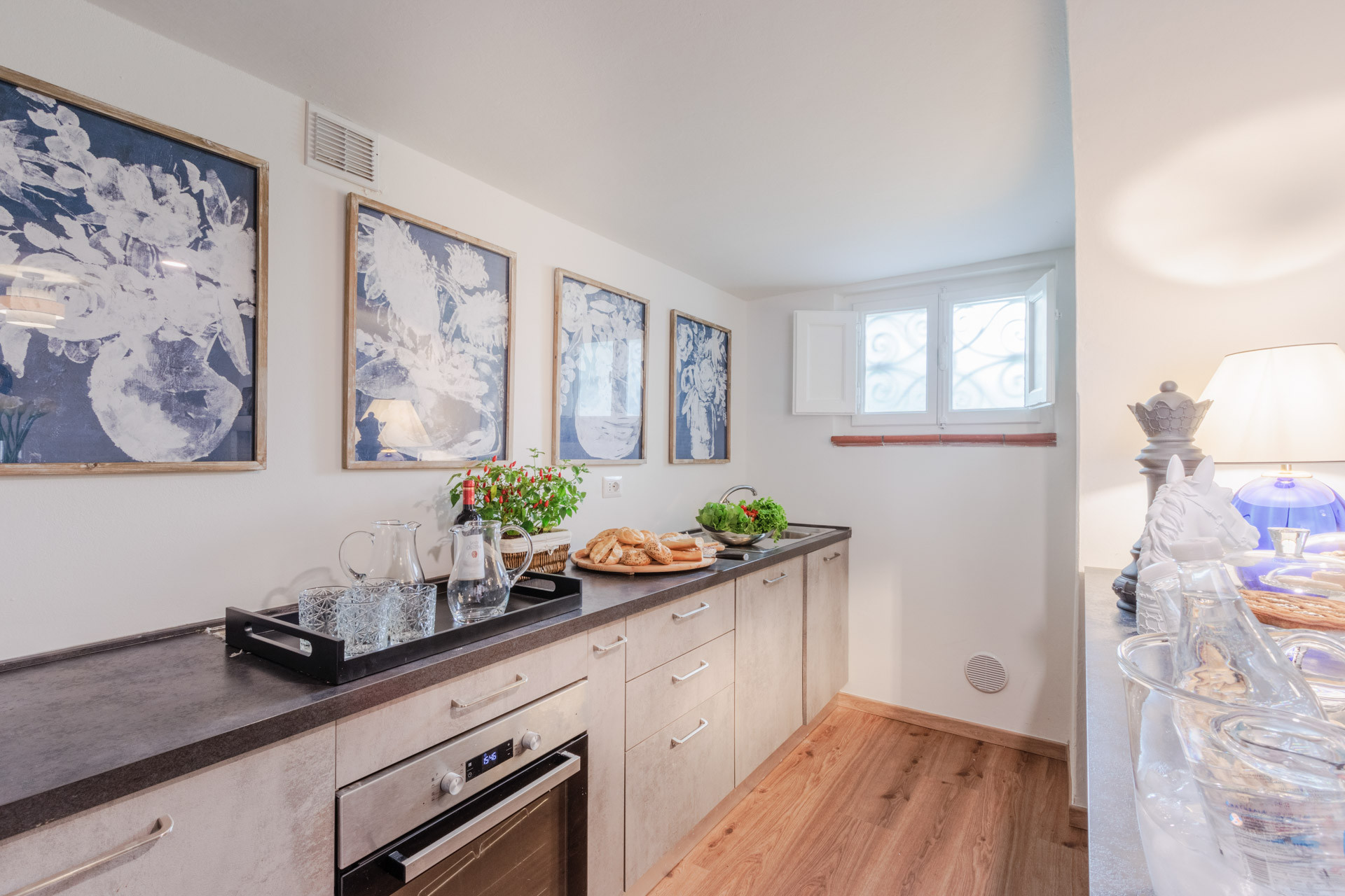 You will find plenty of space where to gather with your loved ones, from the several sitting rooms to the spacious kitchen for funny dinners cooked together, without forgetting the outdoor terrace and garden with private pool – a unique feature, for a villa in town facing the walls of Lucca.