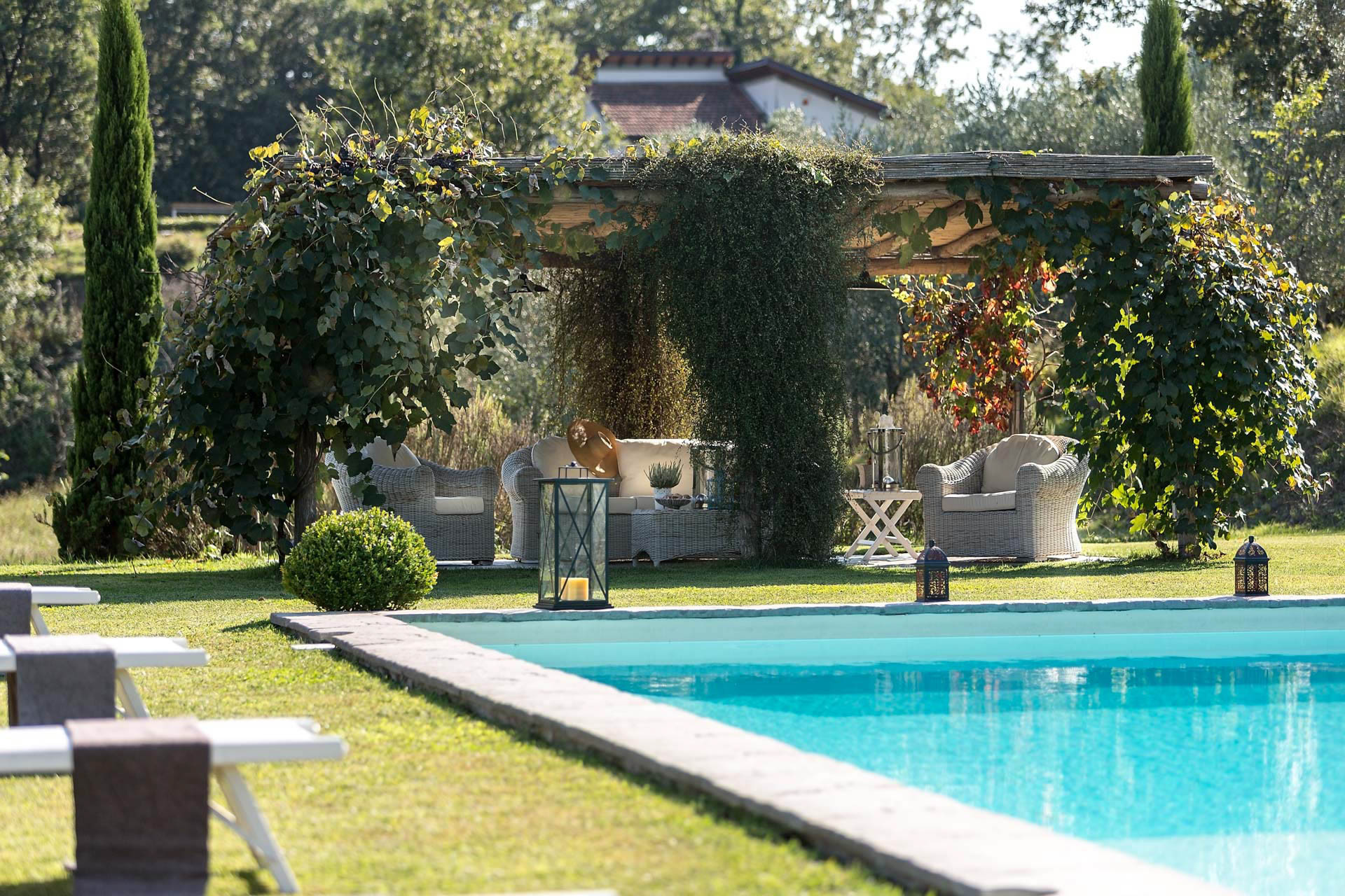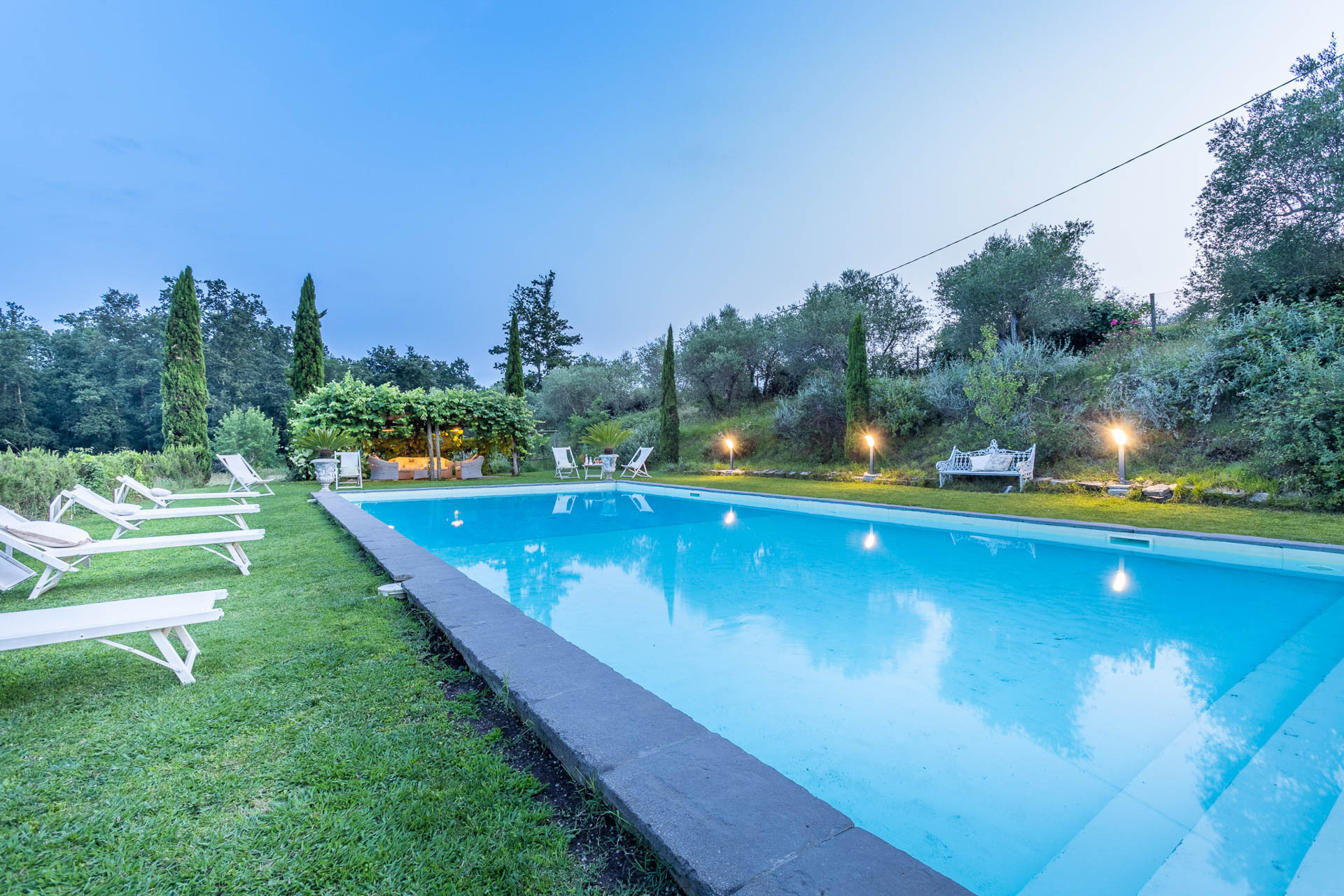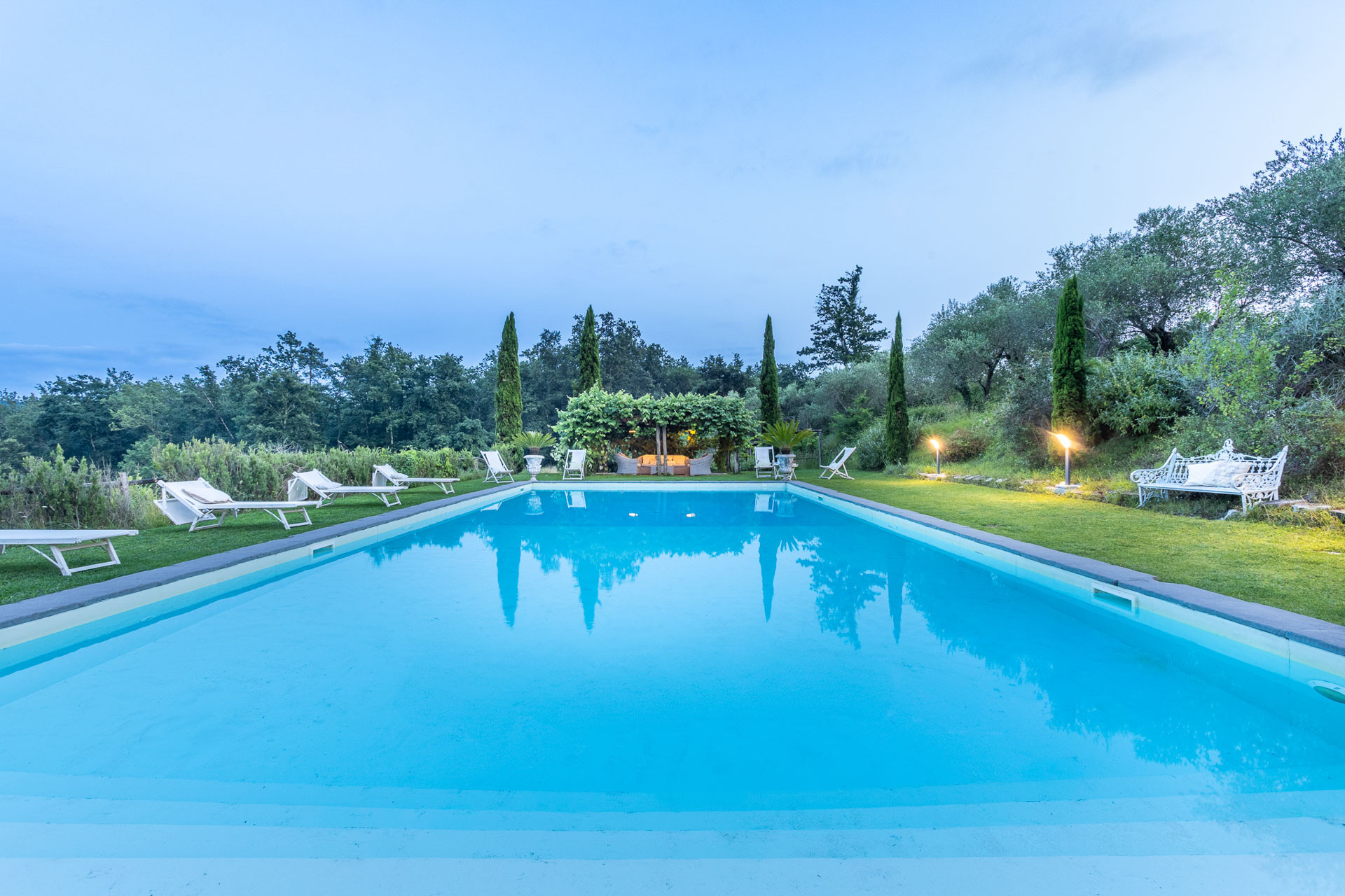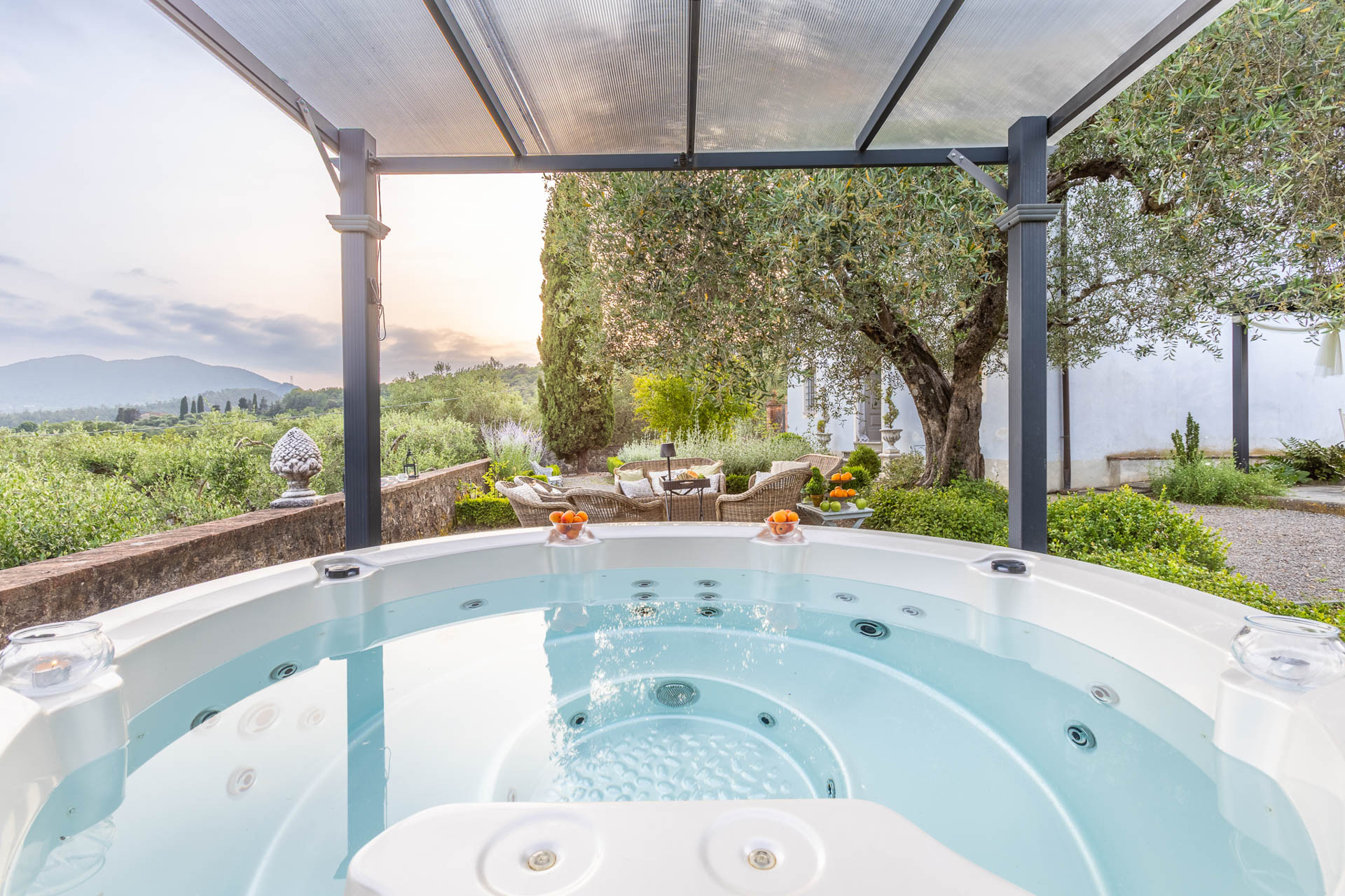 The jewel of the property? A breathtaking, oversized panoramic pool — your private window to the valley below, with sweeping views that stretch across the Lucca countryside. Whether you’re floating beneath the Tuscan sun, sipping wine by sunset, or stargazing from a lounger, this is where time seems to pause and the magic of the moment takes over.