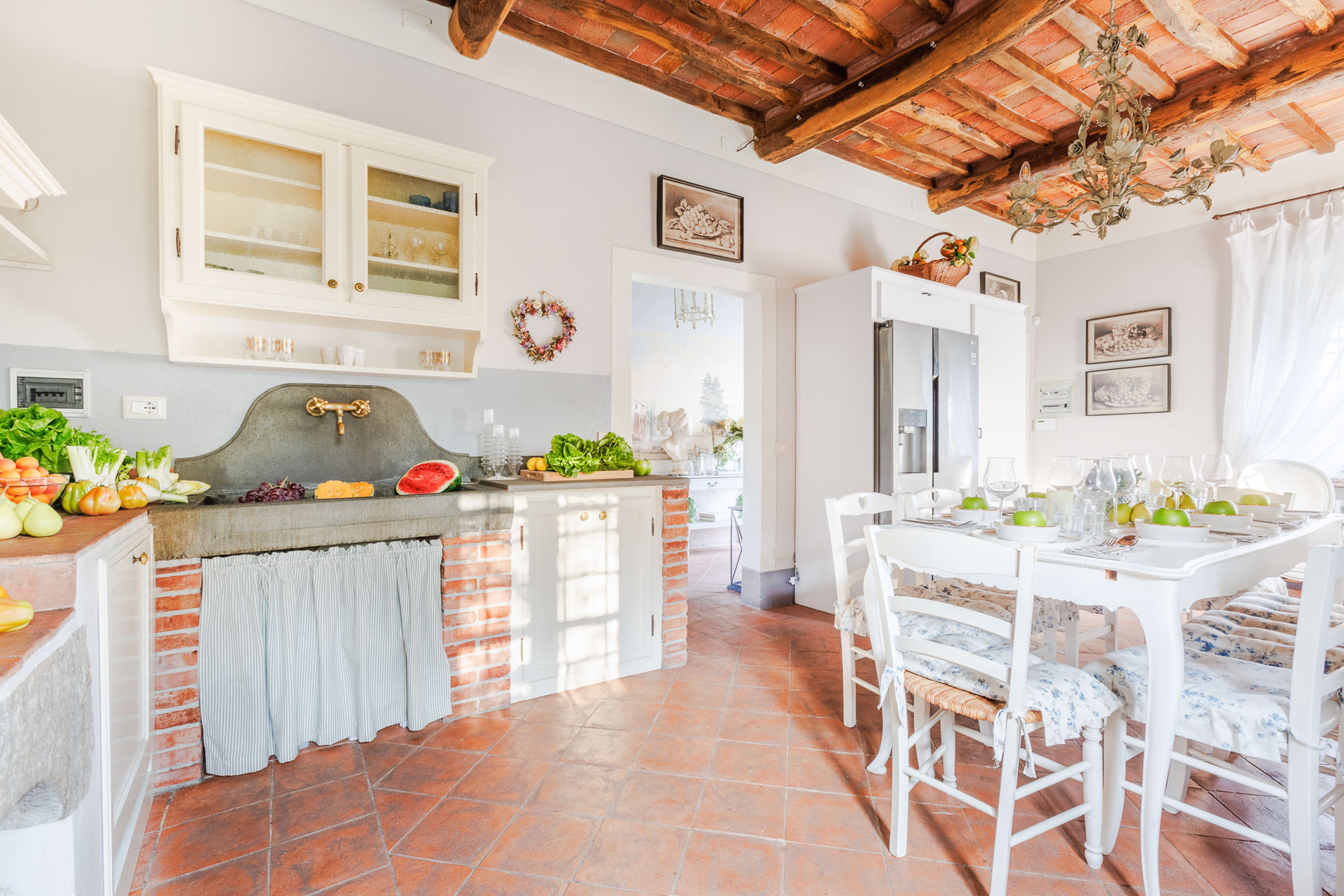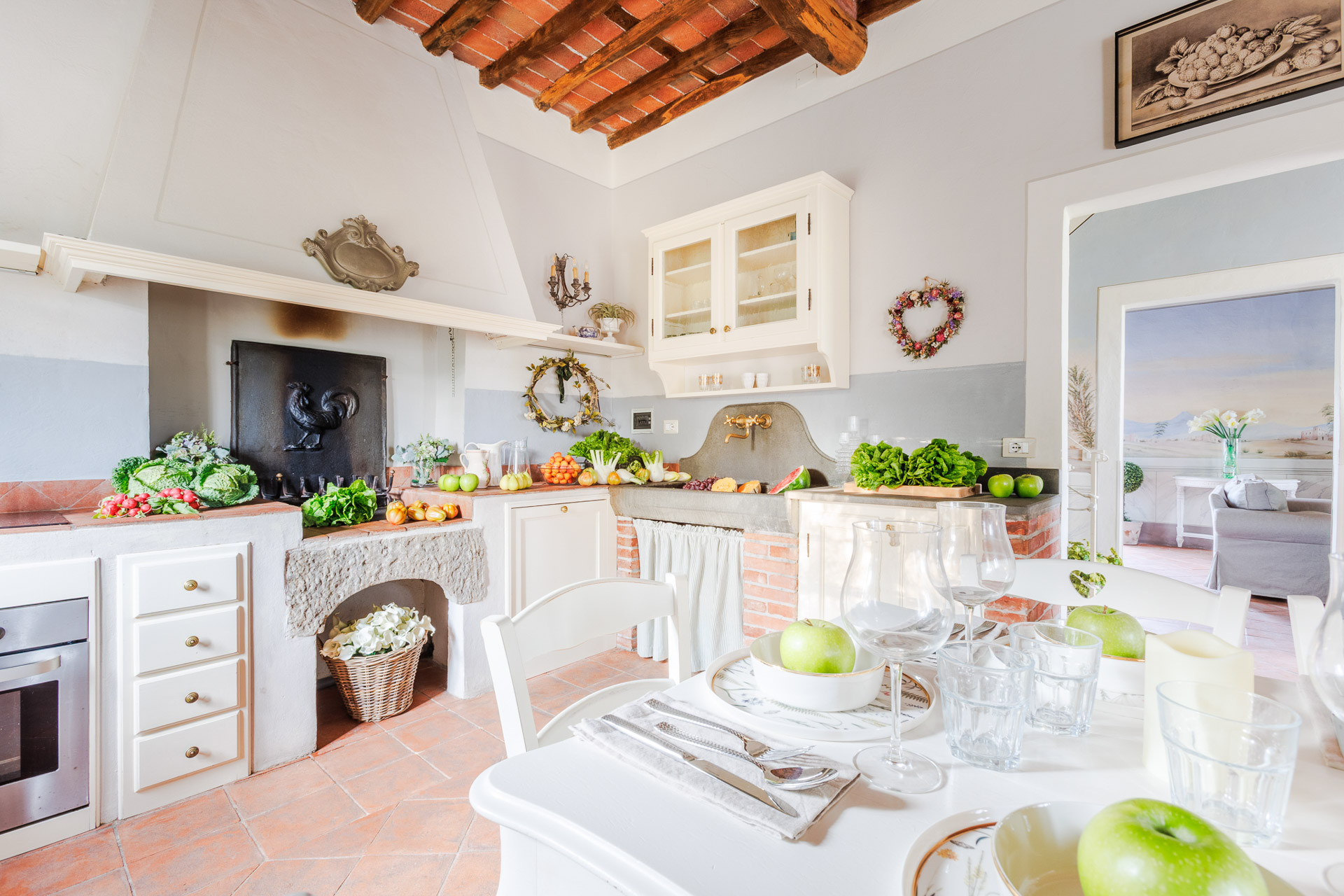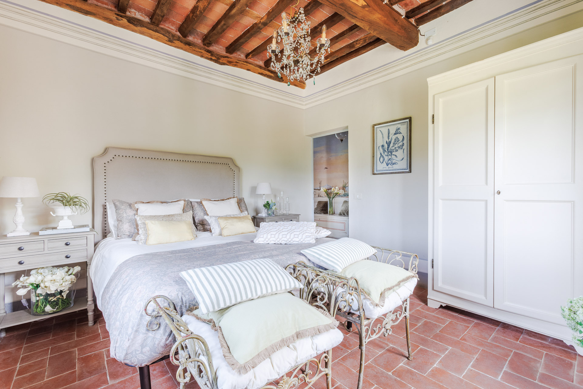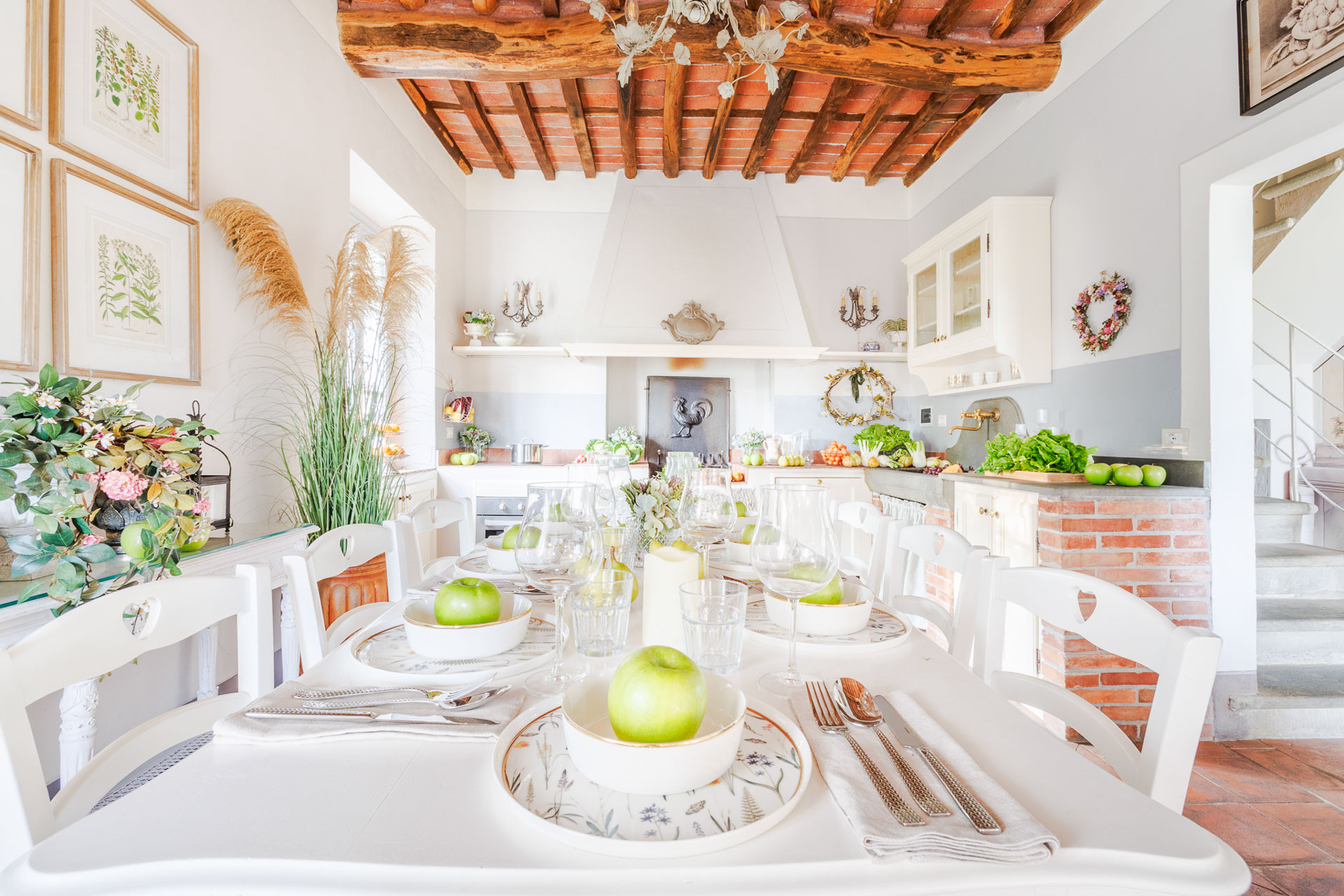 Lovingly restored and styled to perfection, the villa blends rustic character with modern refinement. Think exposed beams and terracotta floors paired with curated design pieces, elegant furnishings, and thoughtful touches throughout. The fully equipped kitchen is a joy for home chefs, while the indoor and outdoor dining spaces set the scene for unforgettable meals shared with family and friends.