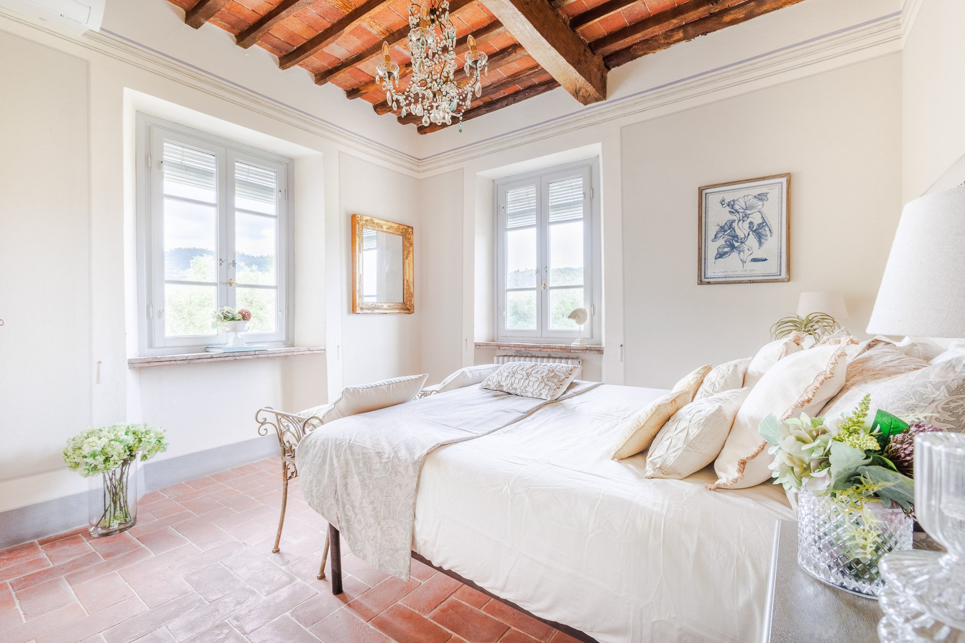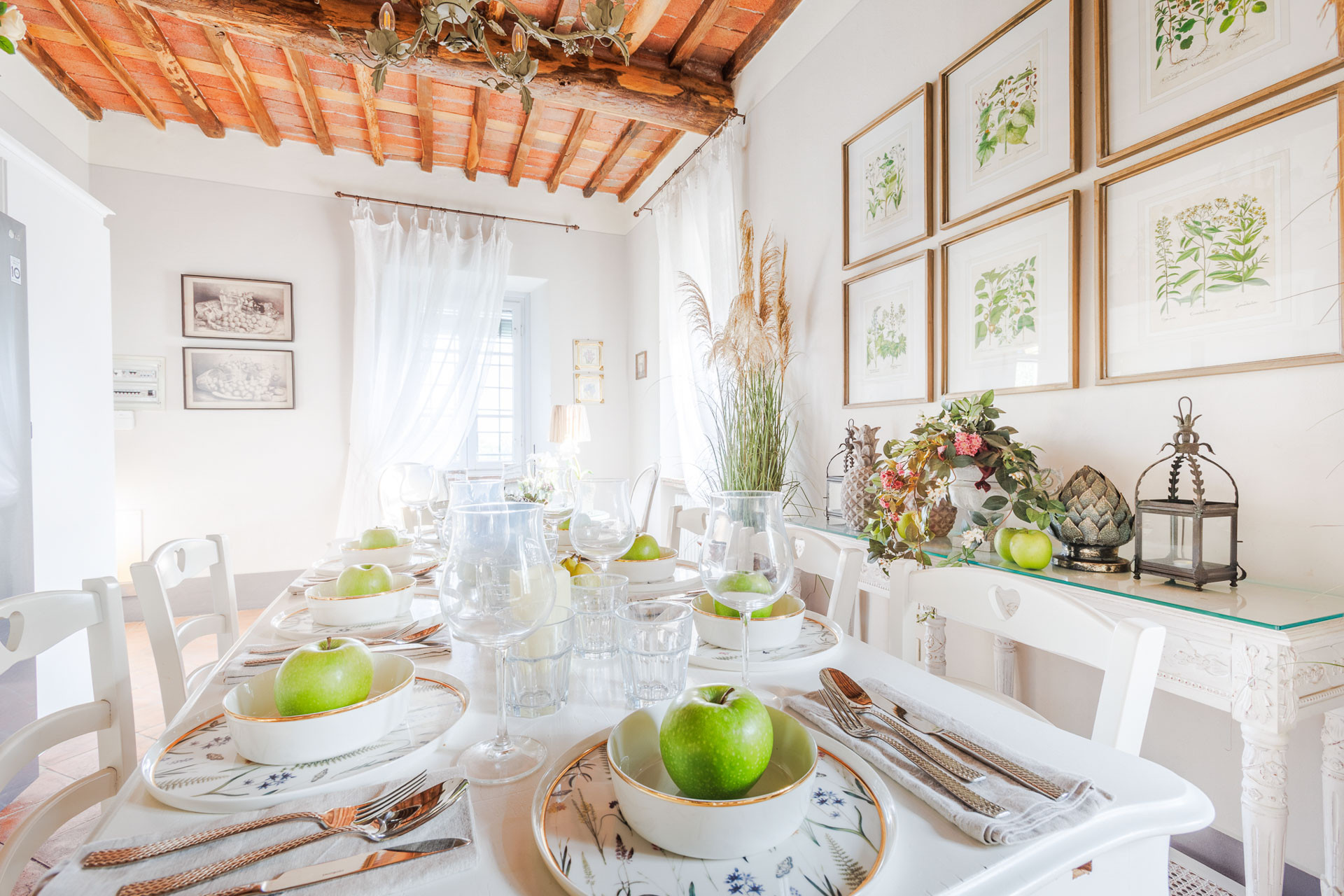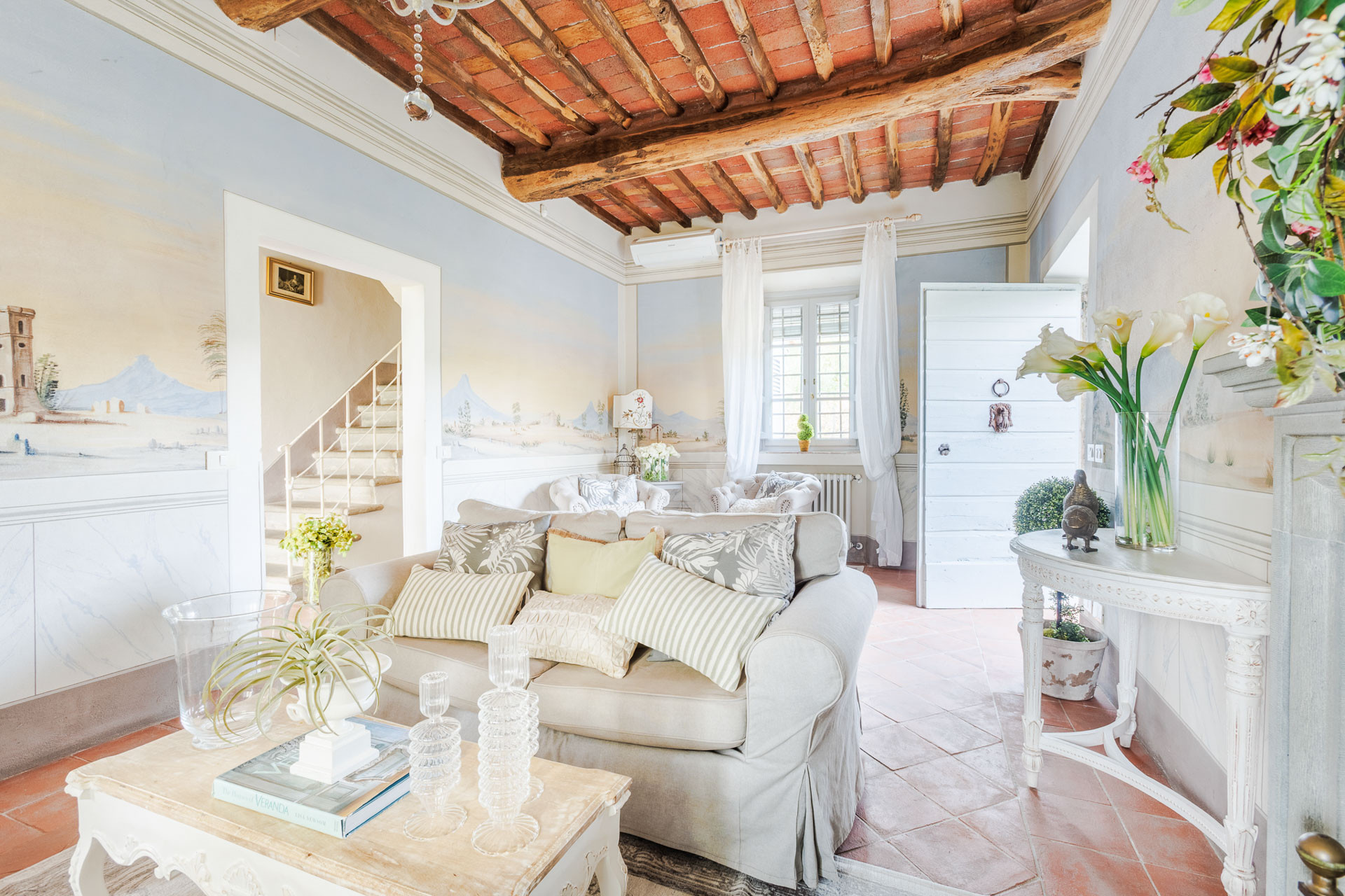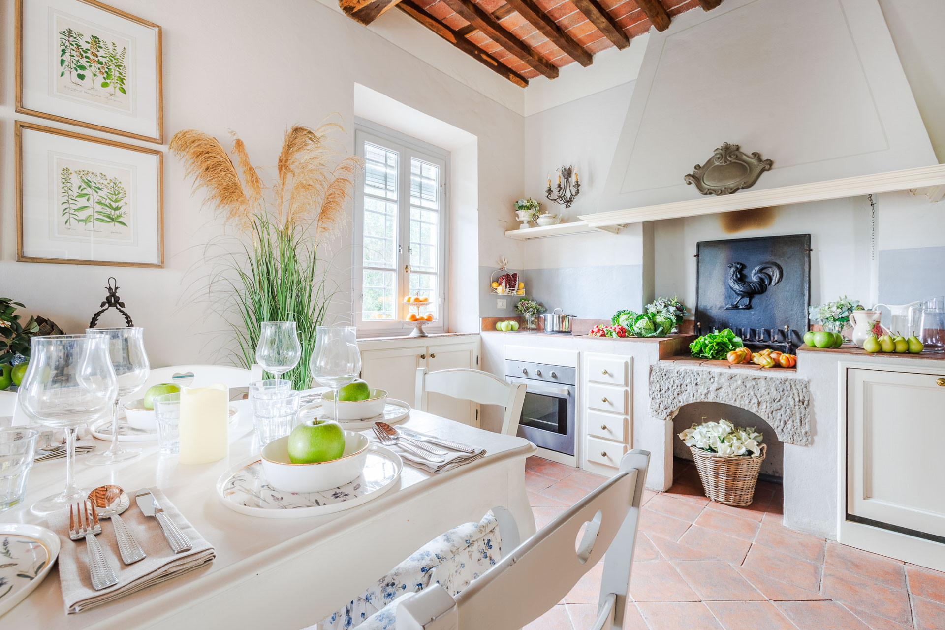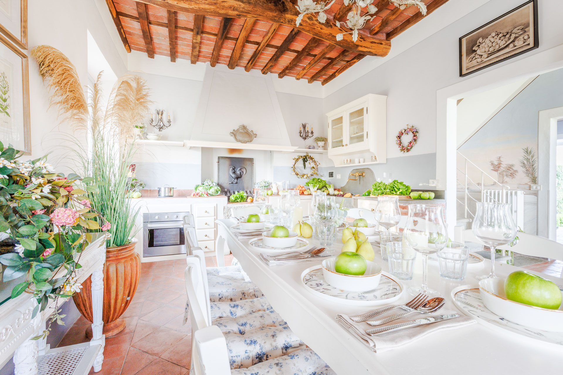 Lovingly restored and styled to perfection, the villa blends rustic character with modern refinement. Think exposed beams and terracotta floors paired with curated design pieces, elegant furnishings, and thoughtful touches throughout. The fully equipped kitchen is a joy for home chefs, while the indoor and outdoor dining spaces set the scene for unforgettable meals shared with family and friends.