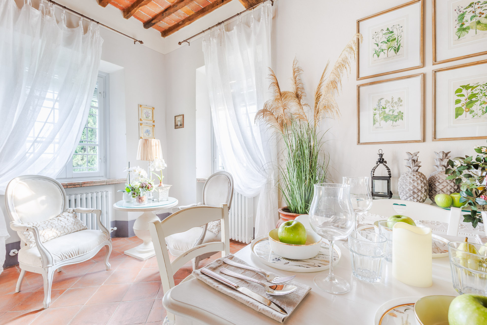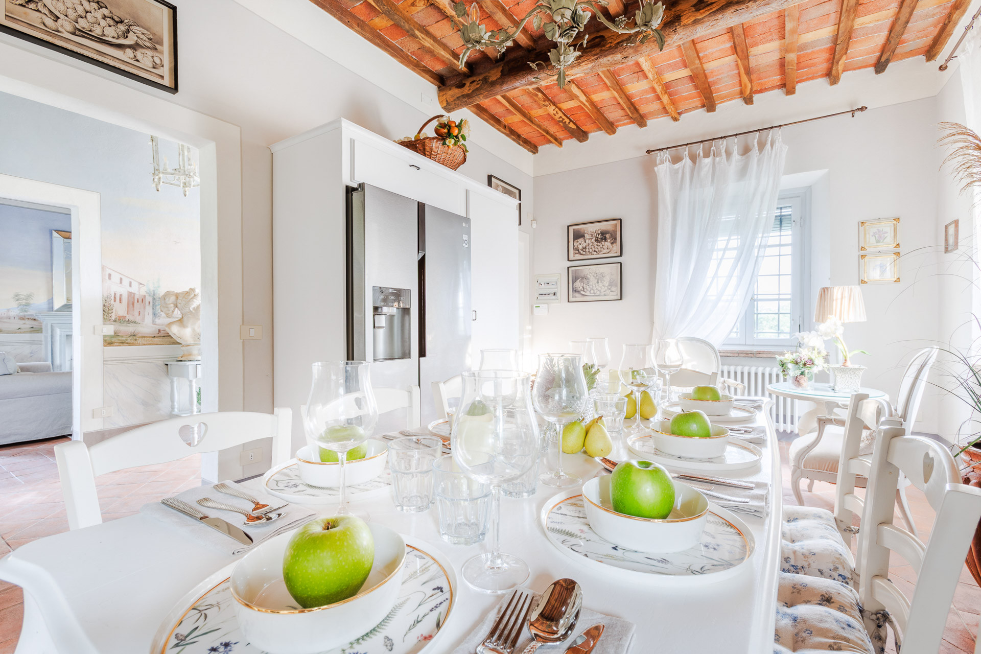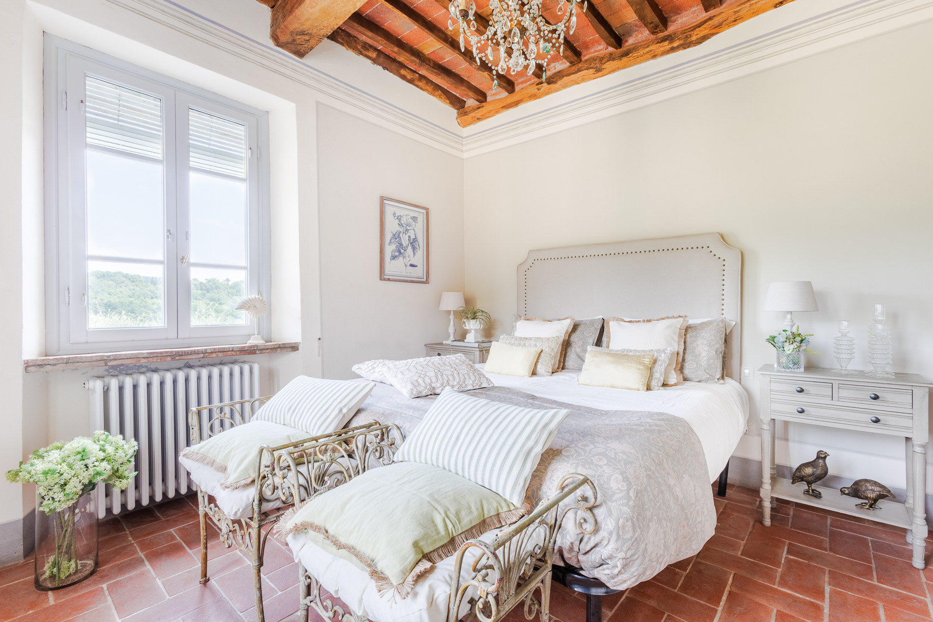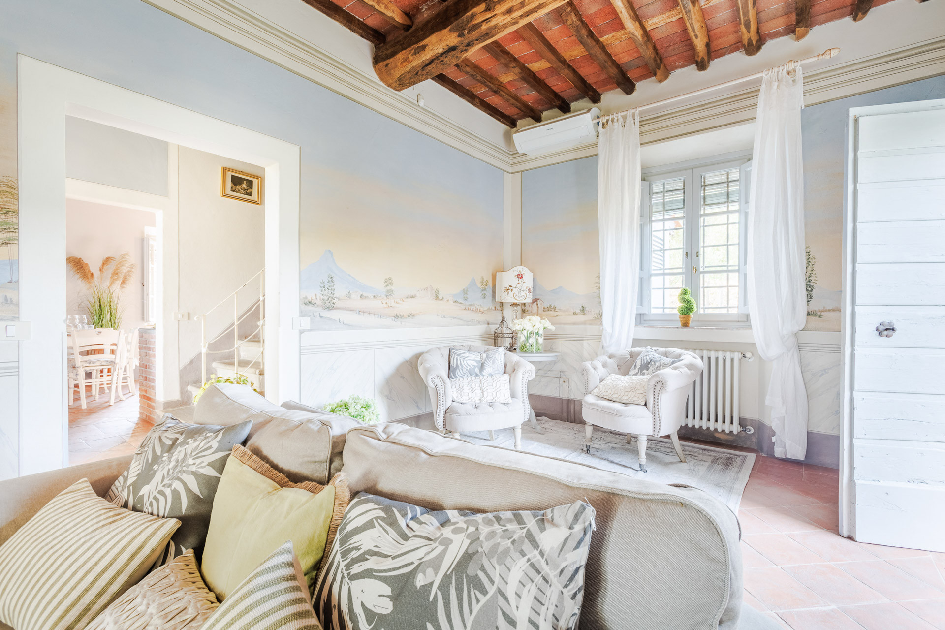 Lovingly restored and styled to perfection, the villa blends rustic character with modern refinement. Think exposed beams and terracotta floors paired with curated design pieces, elegant furnishings, and thoughtful touches throughout. The fully equipped kitchen is a joy for home chefs, while the indoor and outdoor dining spaces set the scene for unforgettable meals shared with family and friends.