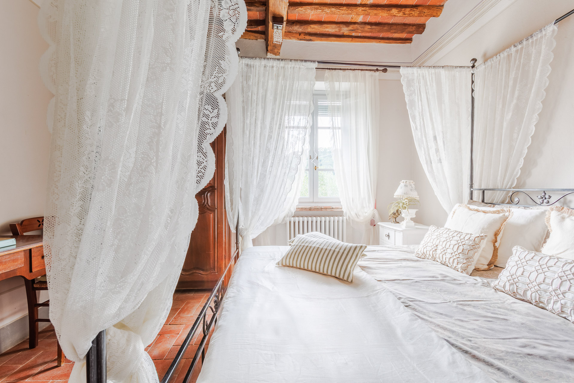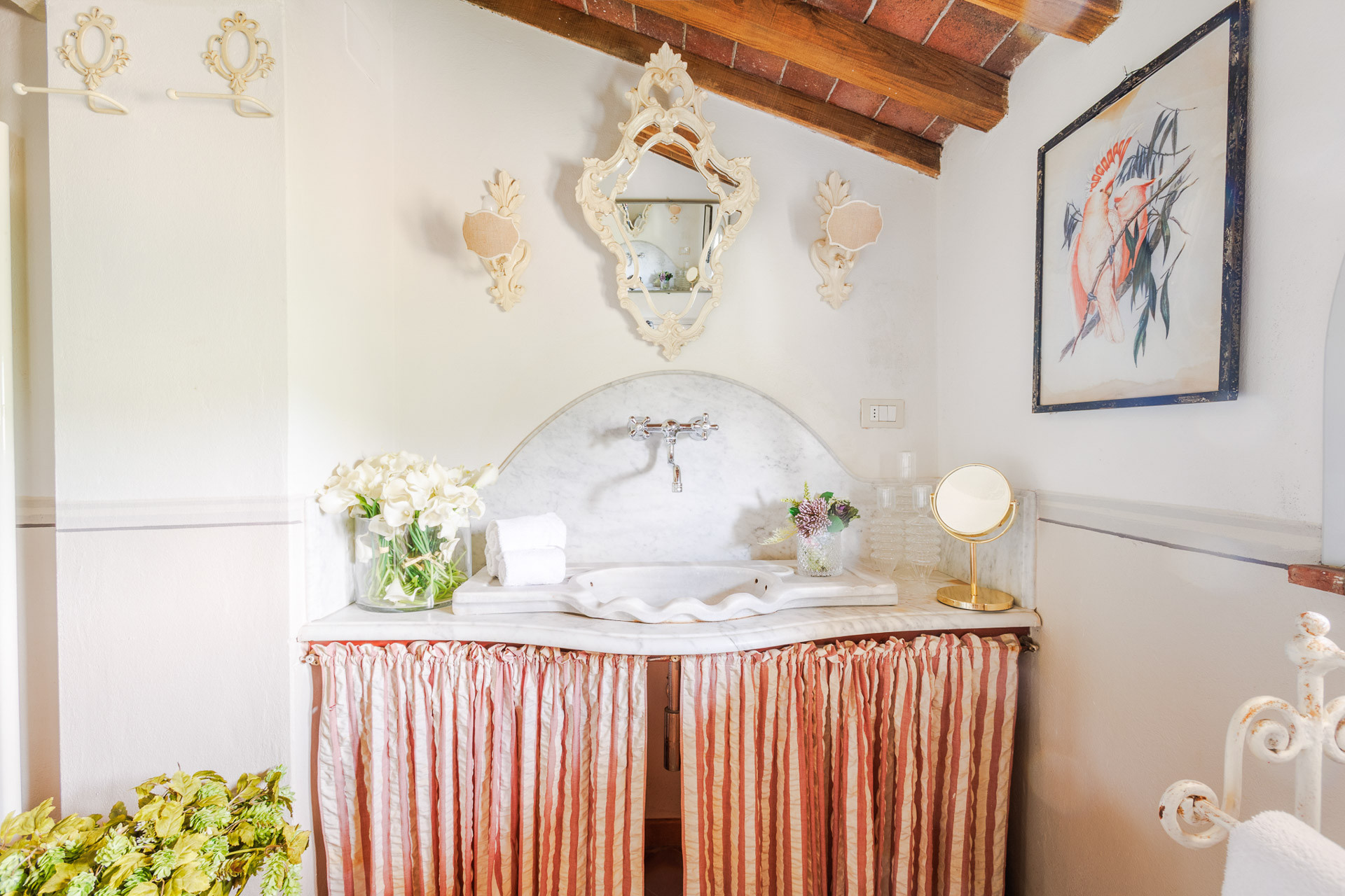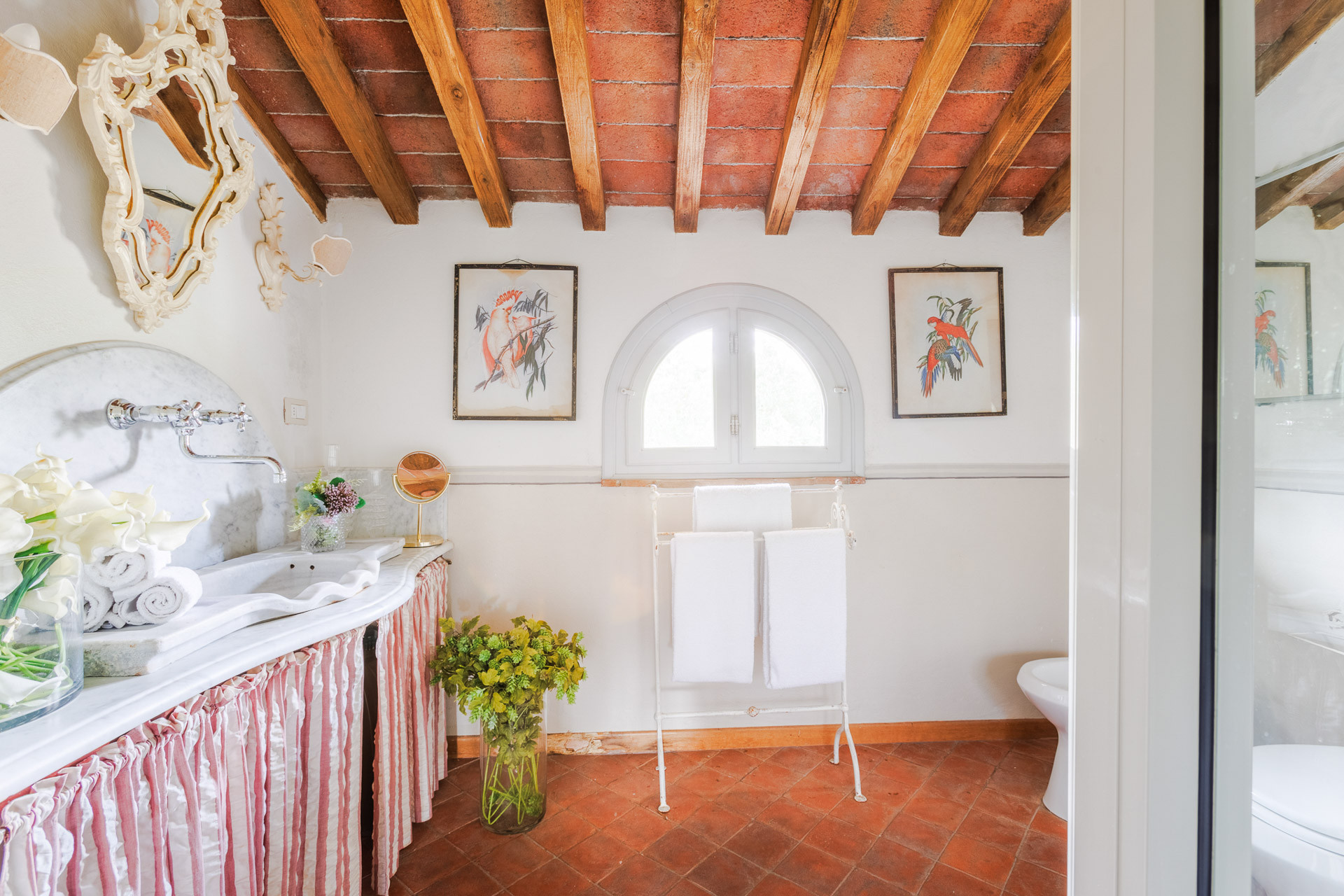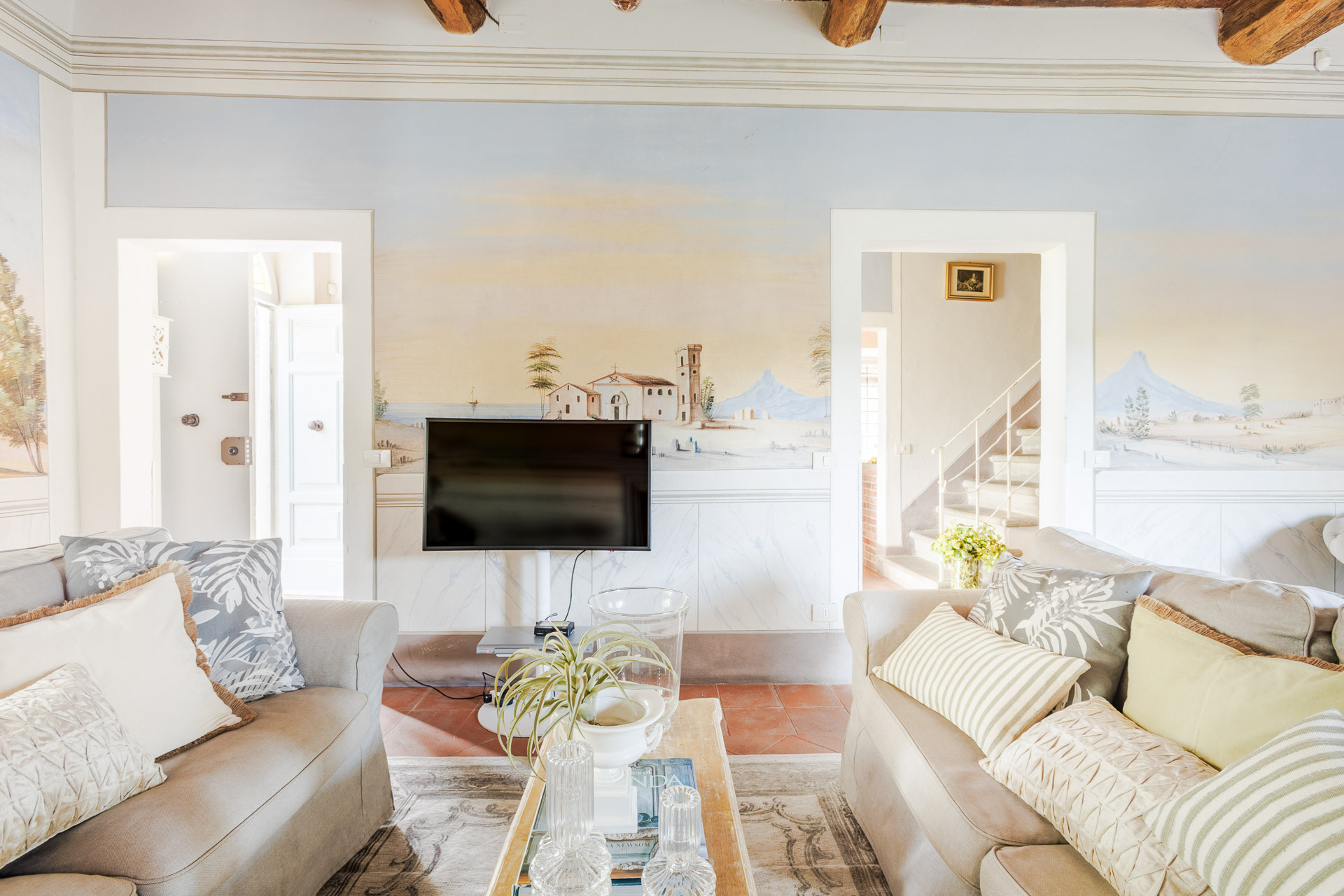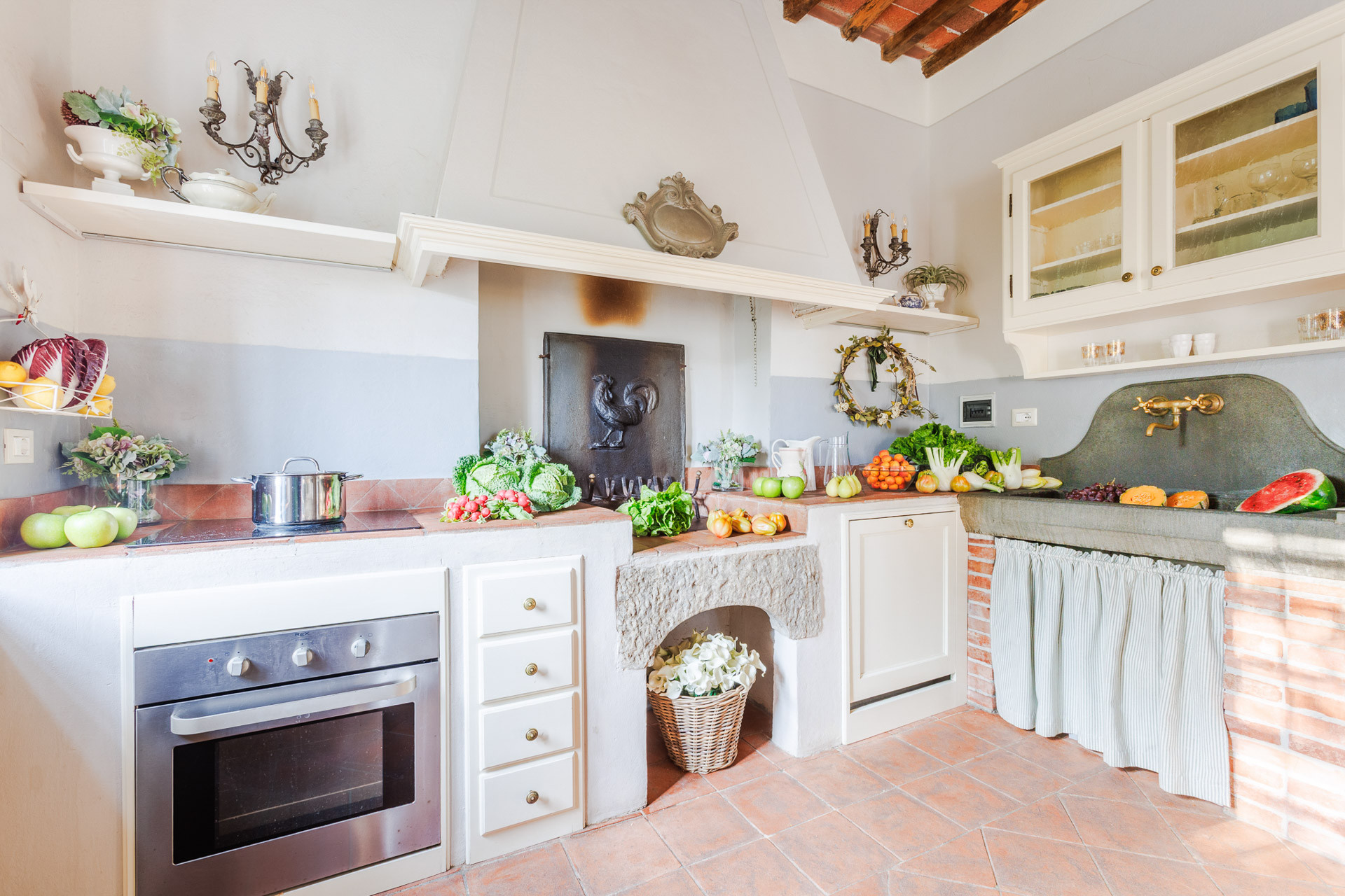 Lovingly restored and styled to perfection, the villa blends rustic character with modern refinement. Think exposed beams and terracotta floors paired with curated design pieces, elegant furnishings, and thoughtful touches throughout. The fully equipped kitchen is a joy for home chefs, while the indoor and outdoor dining spaces set the scene for unforgettable meals shared with family and friends.