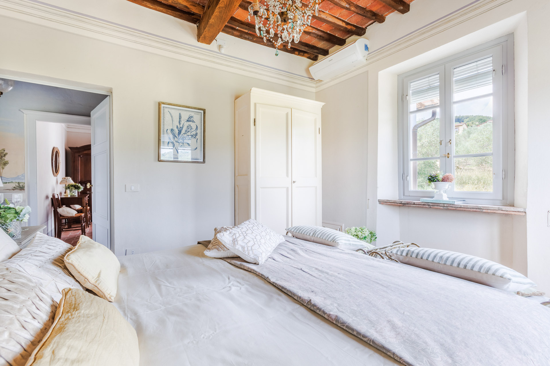 Perfect for those seeking tranquility without isolation, the villa is just minutes from Lucca’s historic center, renowned for its cobbled streets, Renaissance walls, and vibrant culture. Day trips to Florence, Pisa, or the Versilia coast are easily within reach, and yet, returning to your hilltop retreat each evening feels like coming home to your own corner of paradise.