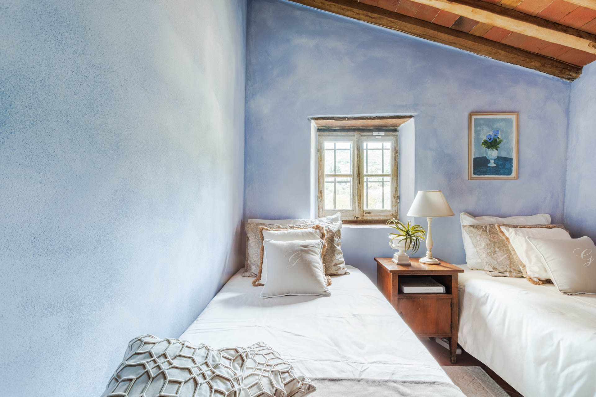 One of the villa’s highlights is its ancient cellar, now transformed into a welcoming lounge with exposed stone walls that stay cool even on the warmest summer days—a perfect retreat for reading, conversation, or simply relaxing.