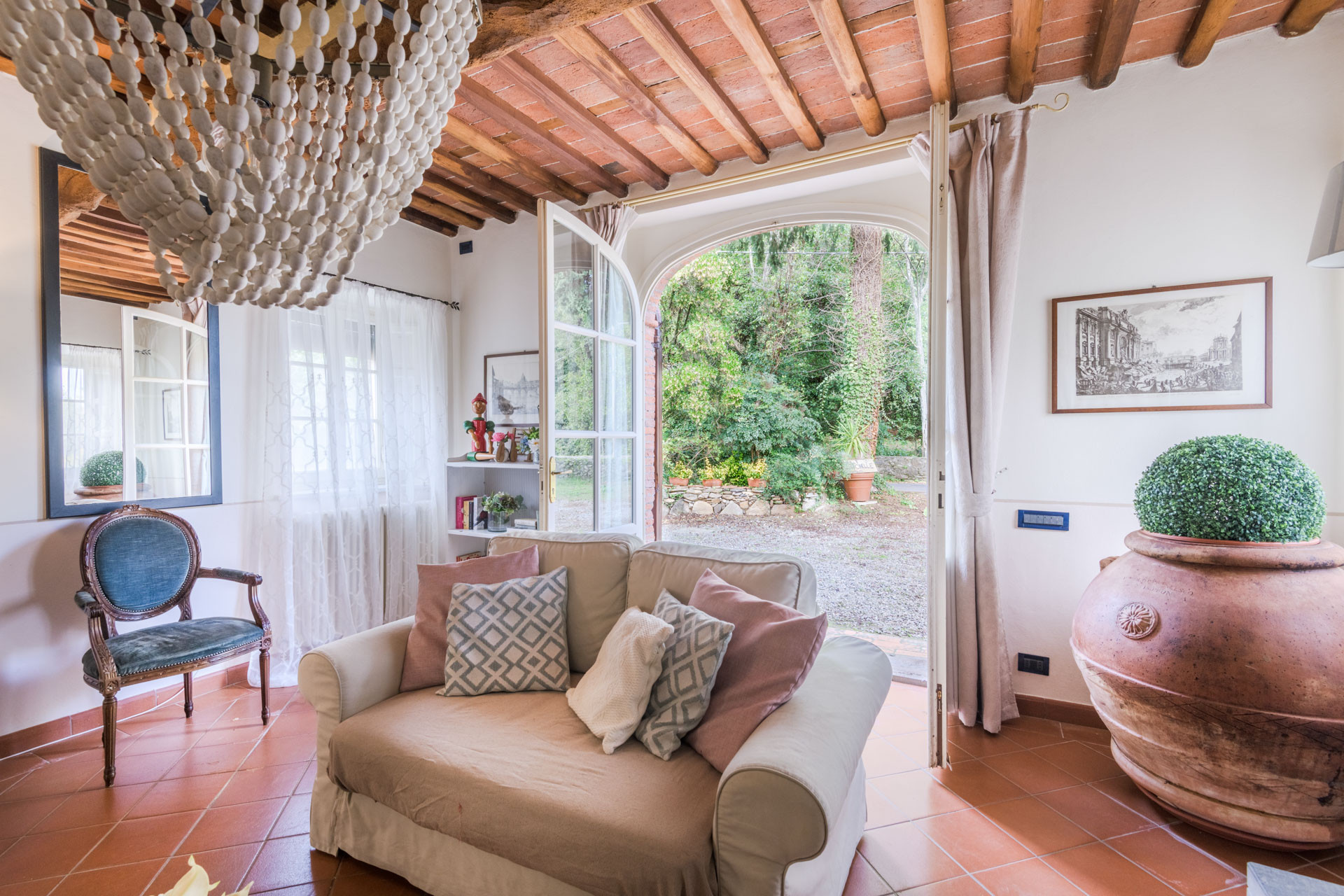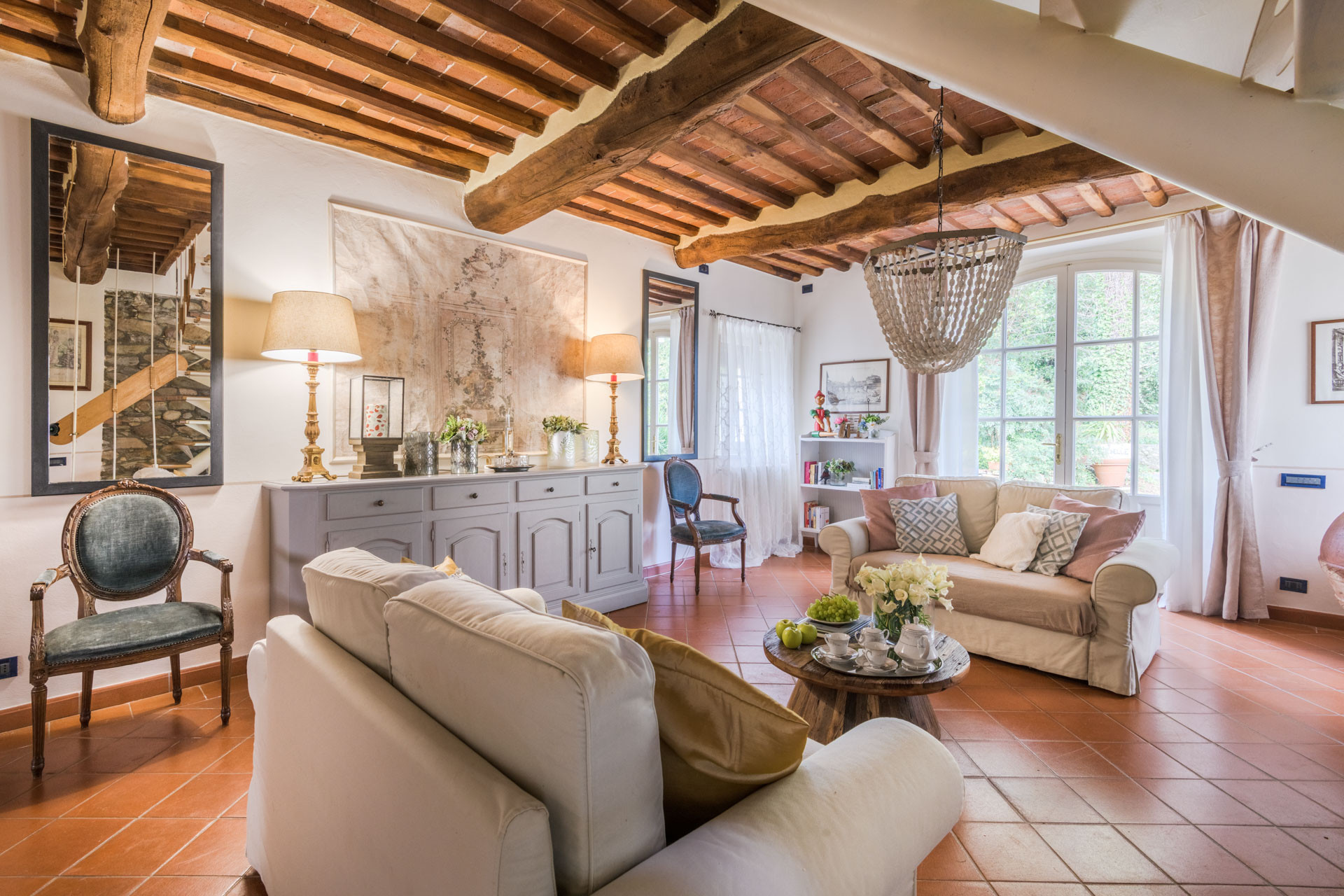 The gate in the antique stone low wall that encloses the little estate leads you to this two-bedroom farmhouse, immersed in a hillside with views among the greenery of the area around Lucca. The house is equipped with air conditioning in the bedrooms on the first floor.