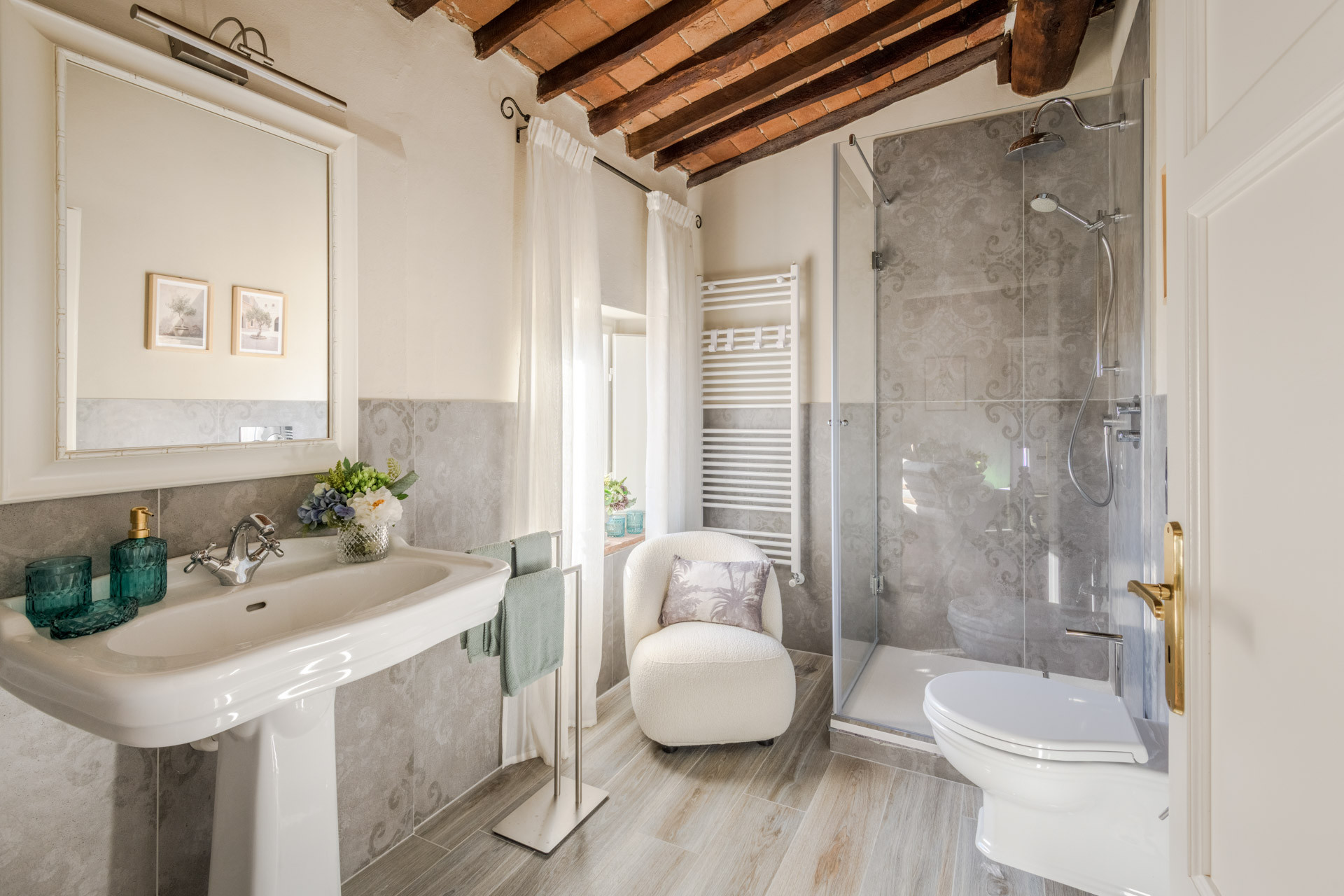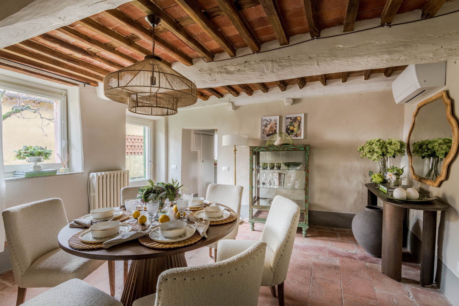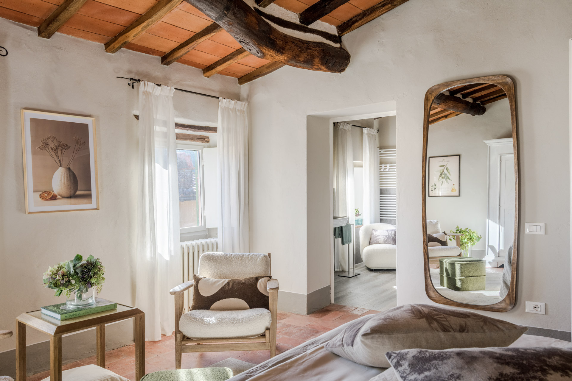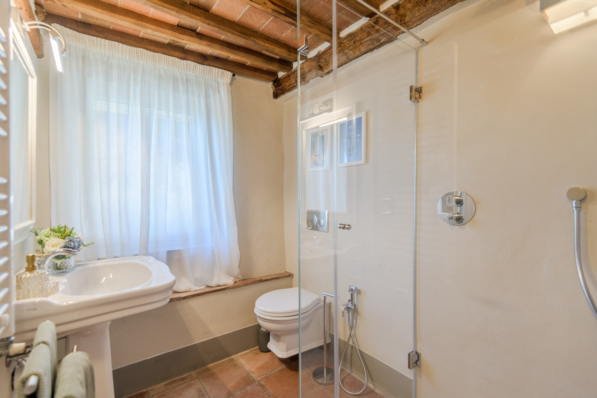 The cottage is nestled within a tiny, authentic hamlet where real Tuscan life still unfolds. Here, you’ll witness olive harvests by hand, old women tending their vegetable gardens with quiet devotion, and a wise old man strolling the lanes with his loyal dog, always wandering and looking for a gentle cuddle from the inhabitants of the hamlet. Life moves at a human pace, guided by tradition, seasons, and simple pleasures.